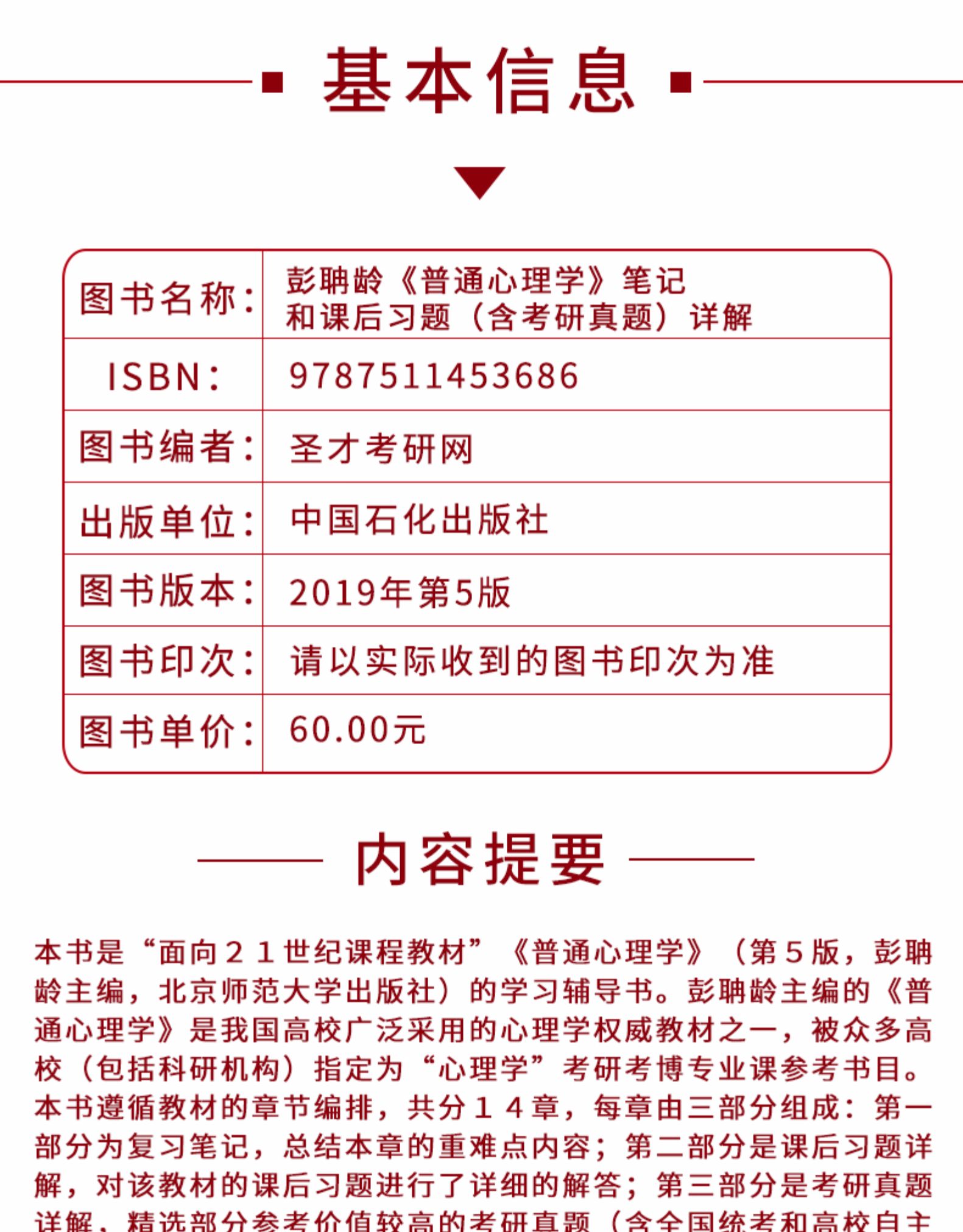 【官方旗舰店】 2020考研专业课 彭聃龄 普通心理学第5版 笔记和课后习题(含考研真题)详解配北京师范大学版教材312 347心理学