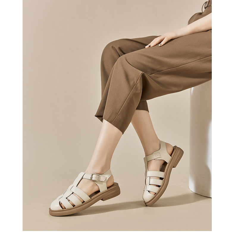 ZHR包头凉鞋女2022年新款夏季复古平底罗马鞋百搭软底沙滩鞋 商品图0