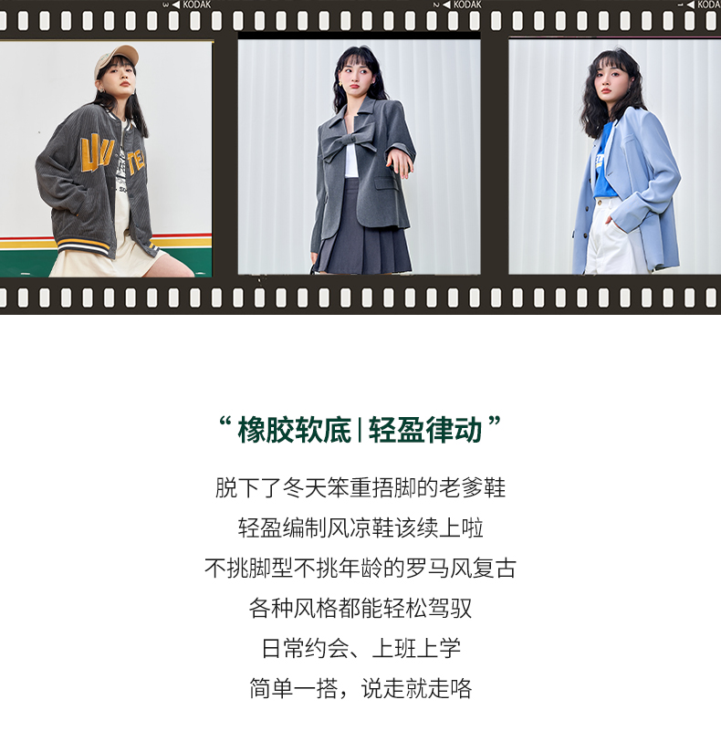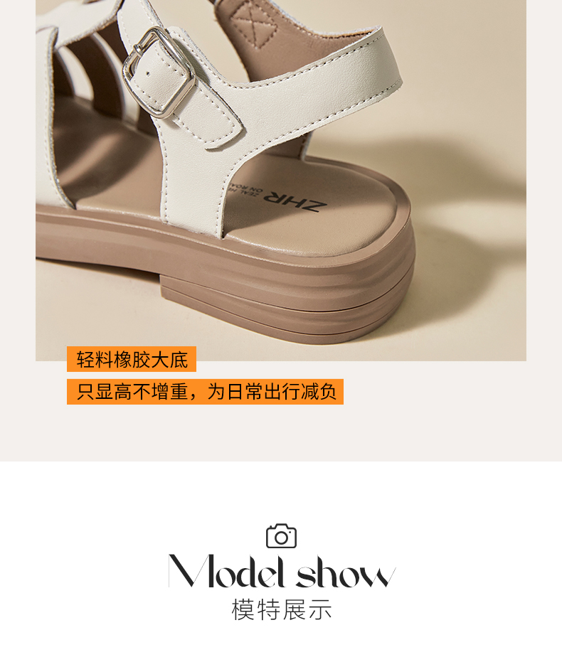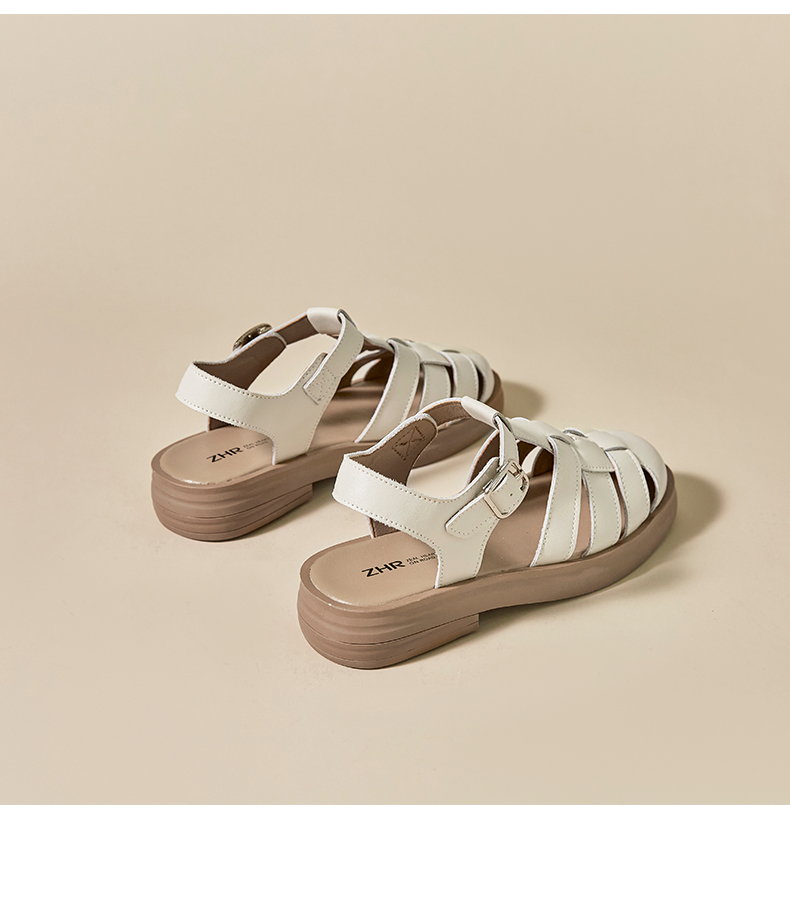 ZHR包头凉鞋女2022年新款夏季复古平底罗马鞋百搭软底沙滩鞋 商品图8