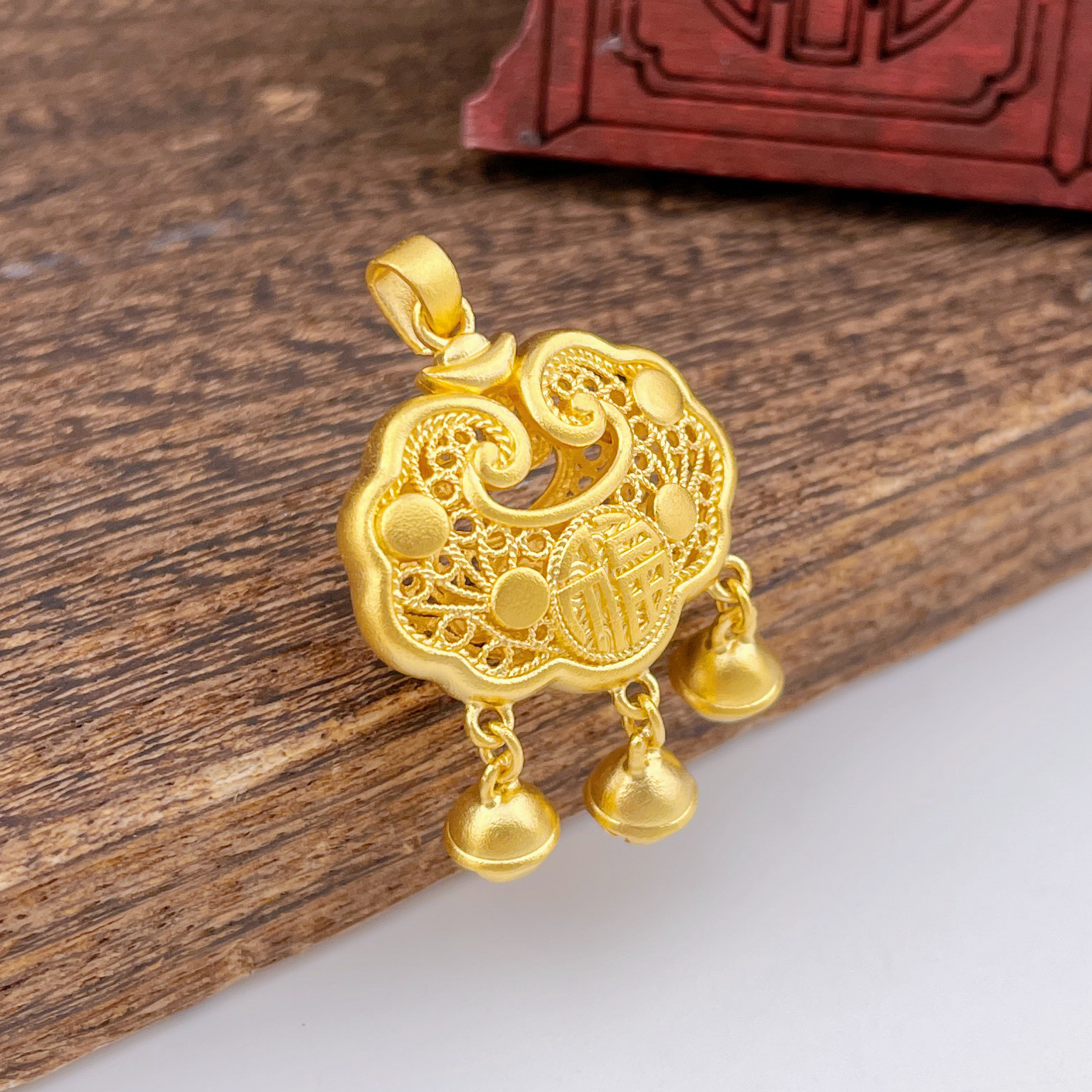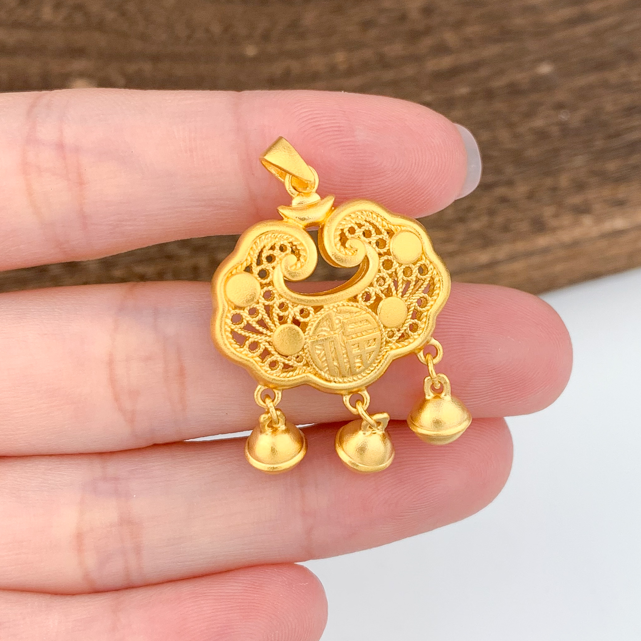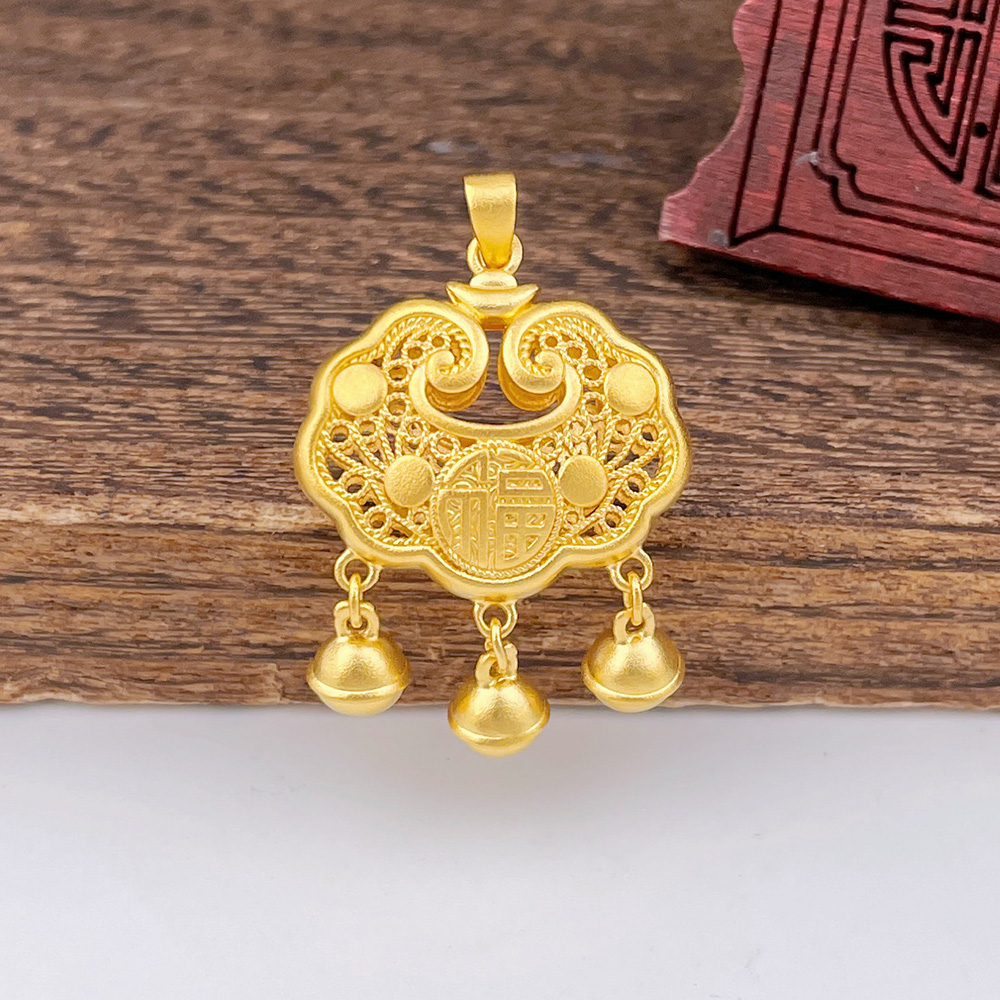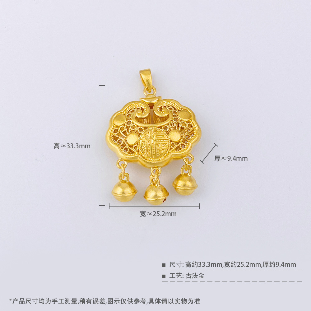 【限时克减150元】足金999.9 古法双面镂空福字铃铛如意福字锁包吊坠网红锁包(ANWZGFDZ00310-5)(预售产品下单后不退款不退货不换货不补差价)