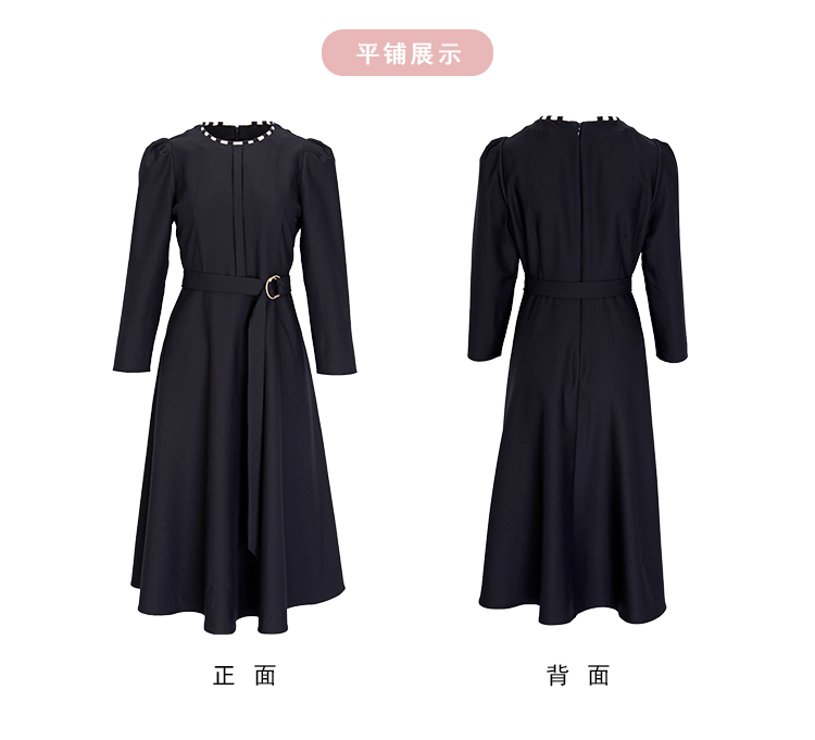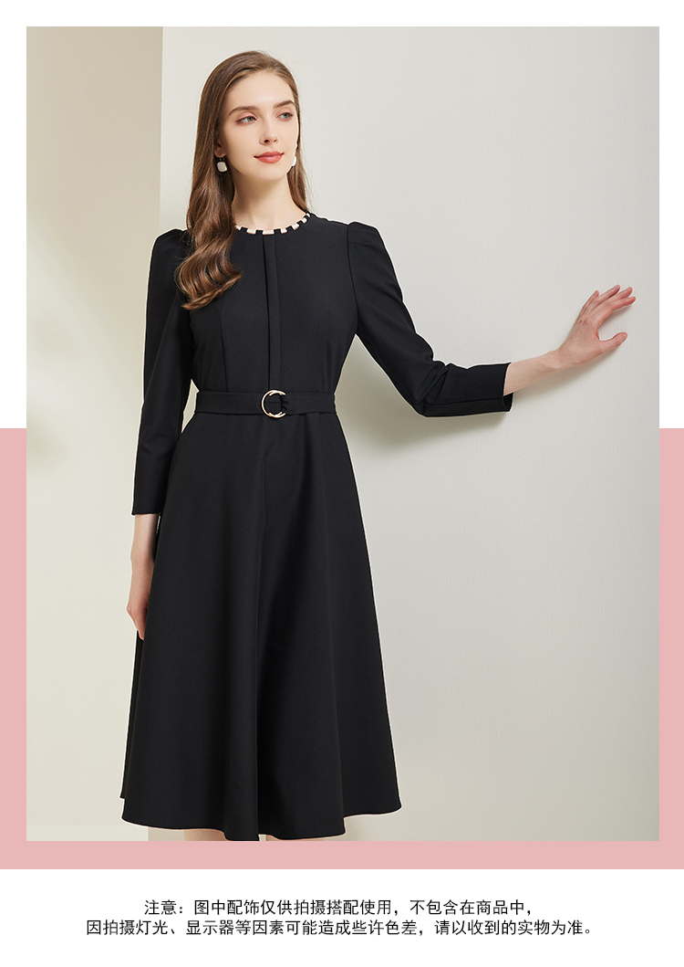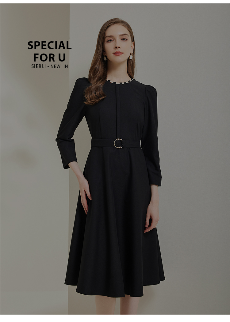 NG812斯尔丽瑟俪2023秋季新款领口手工编制时尚收腰A摆泡泡袖连衣裙