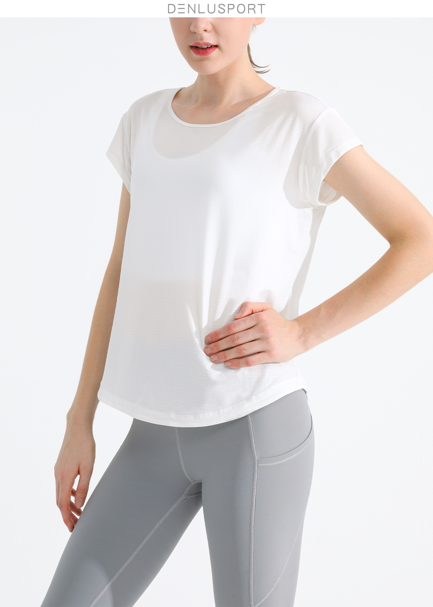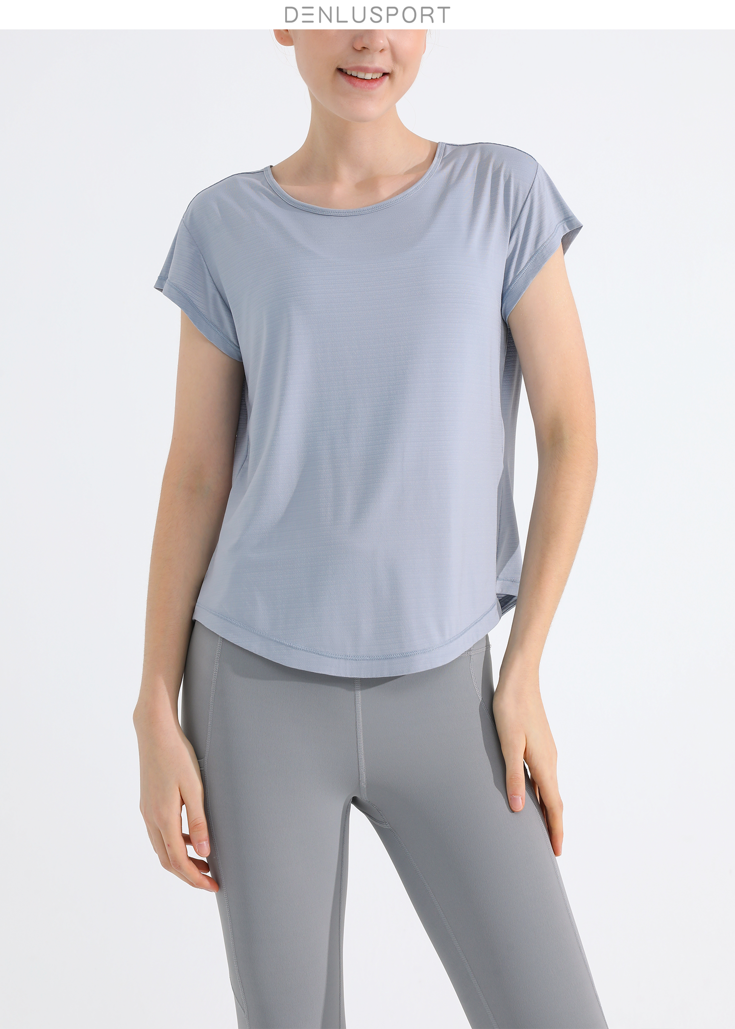 简约大方运动长袖 DY66127# 经典圆领四面回弹 时尚短款镂空设计