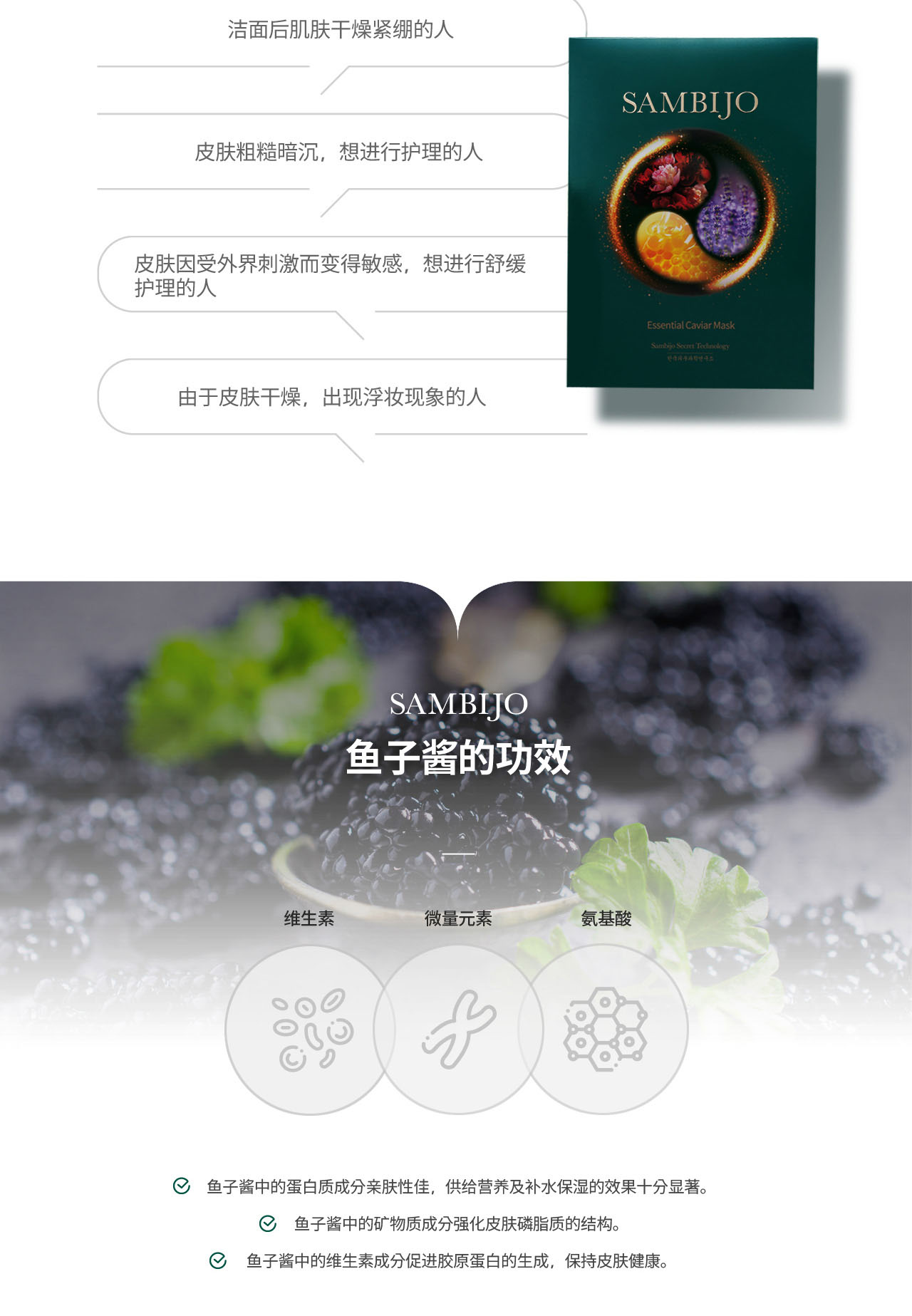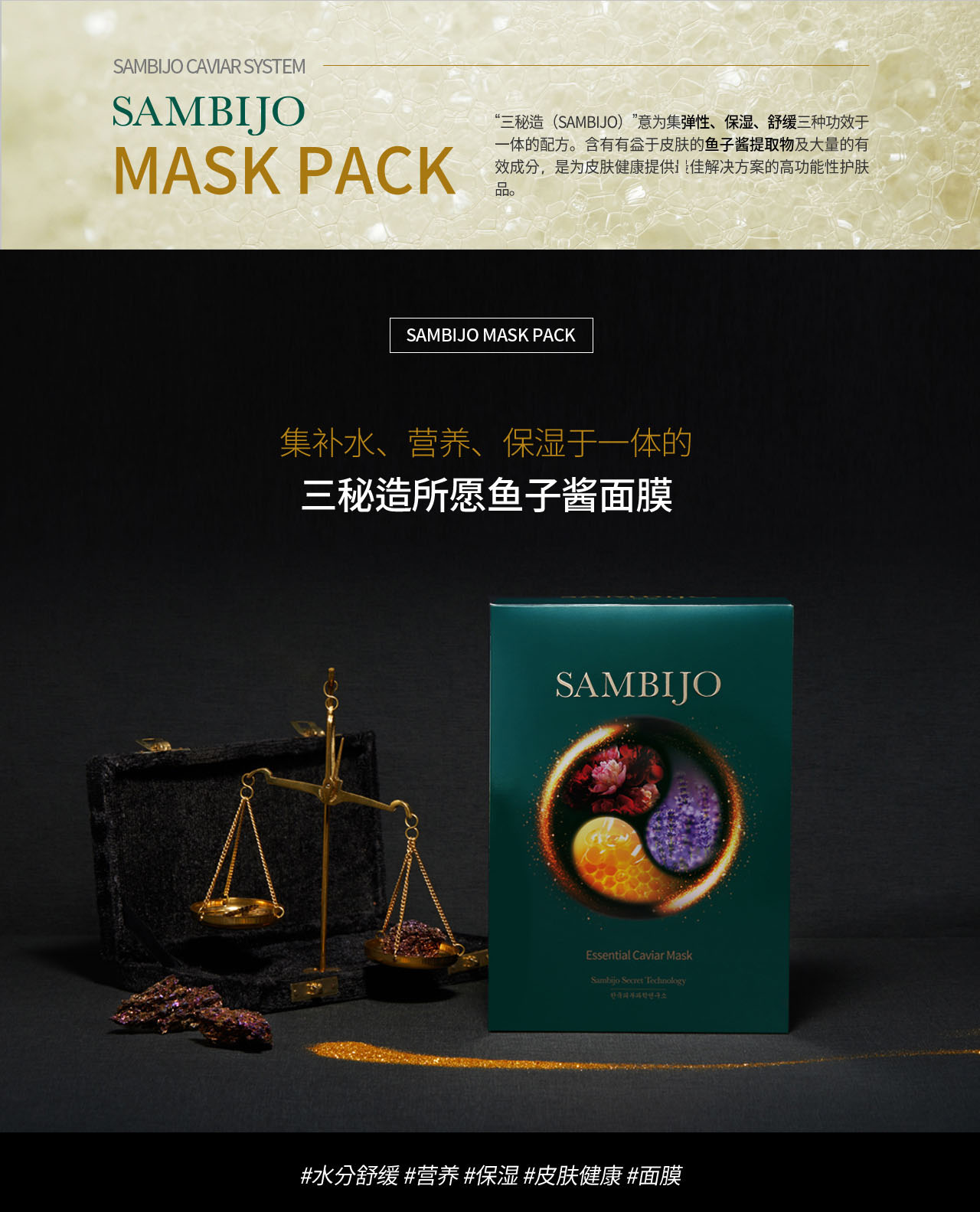 自营-【SAMBIJO】韩国三秘造所愿鱼子酱面膜10片/盒 有效期至2026年10月