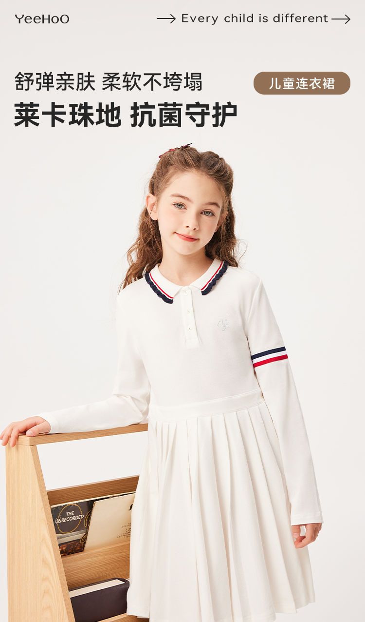 【英氏】【5A抑菌】【110-170】女童春秋长袖连衣裙百褶裙