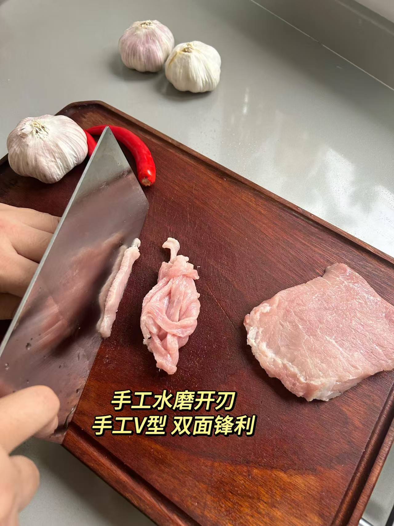 而且它还是手工水磨开刃的,双面锋利,切菜切肉都能轻松搞定,让你的烹饪过程更加顺畅。