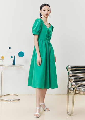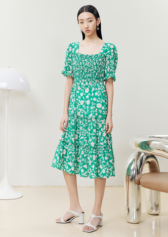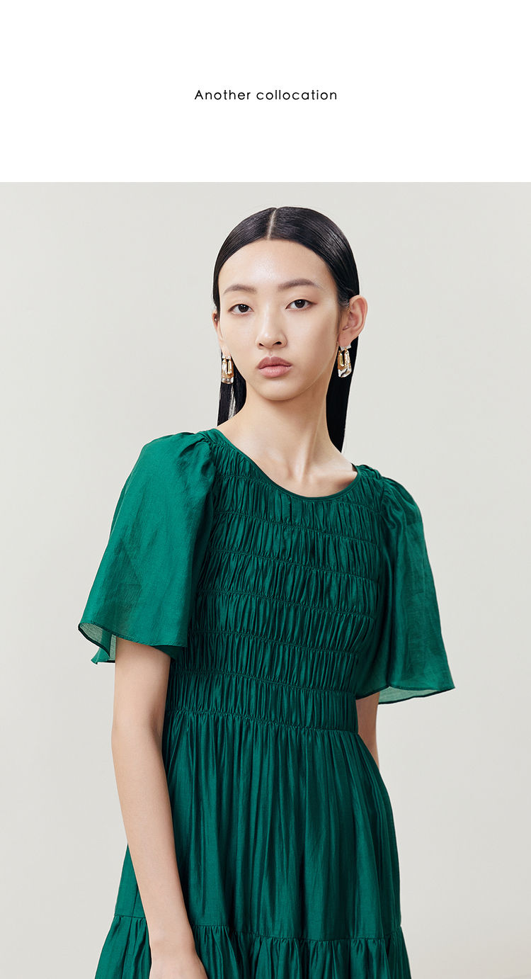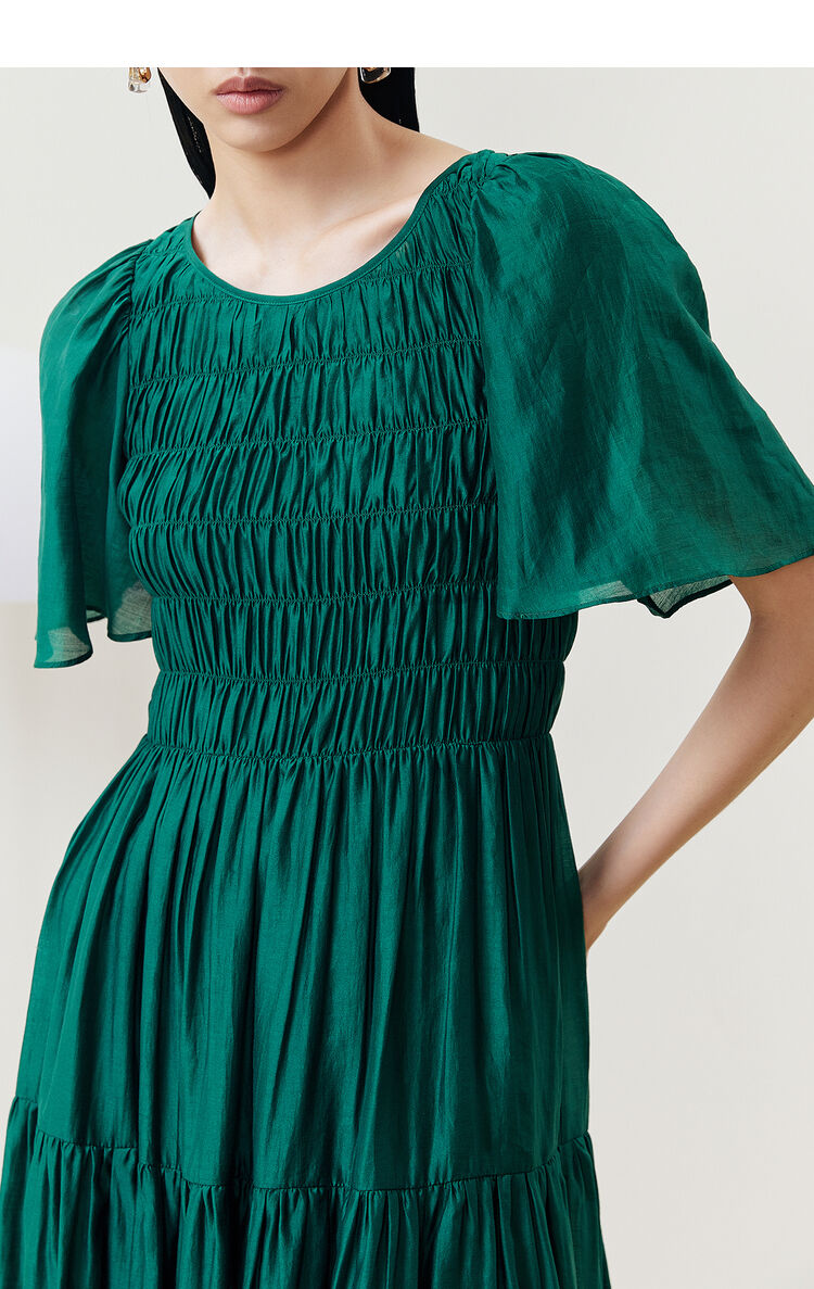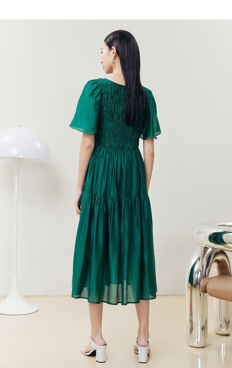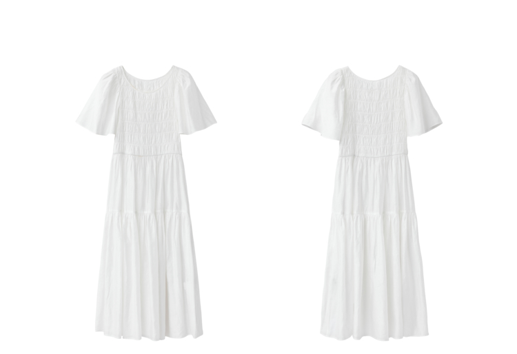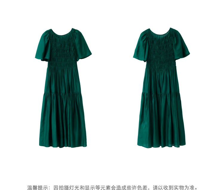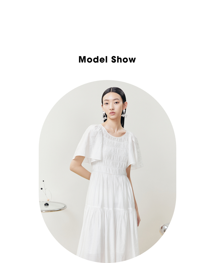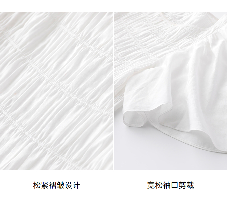 NEELLY纳俪商场同款气质白色连衣裙女松紧褶皱设计显瘦收腰A字裙