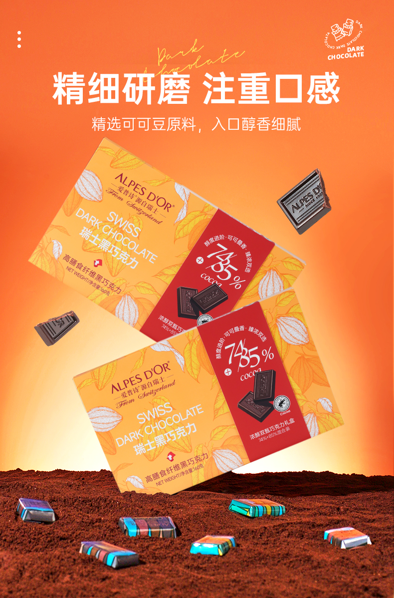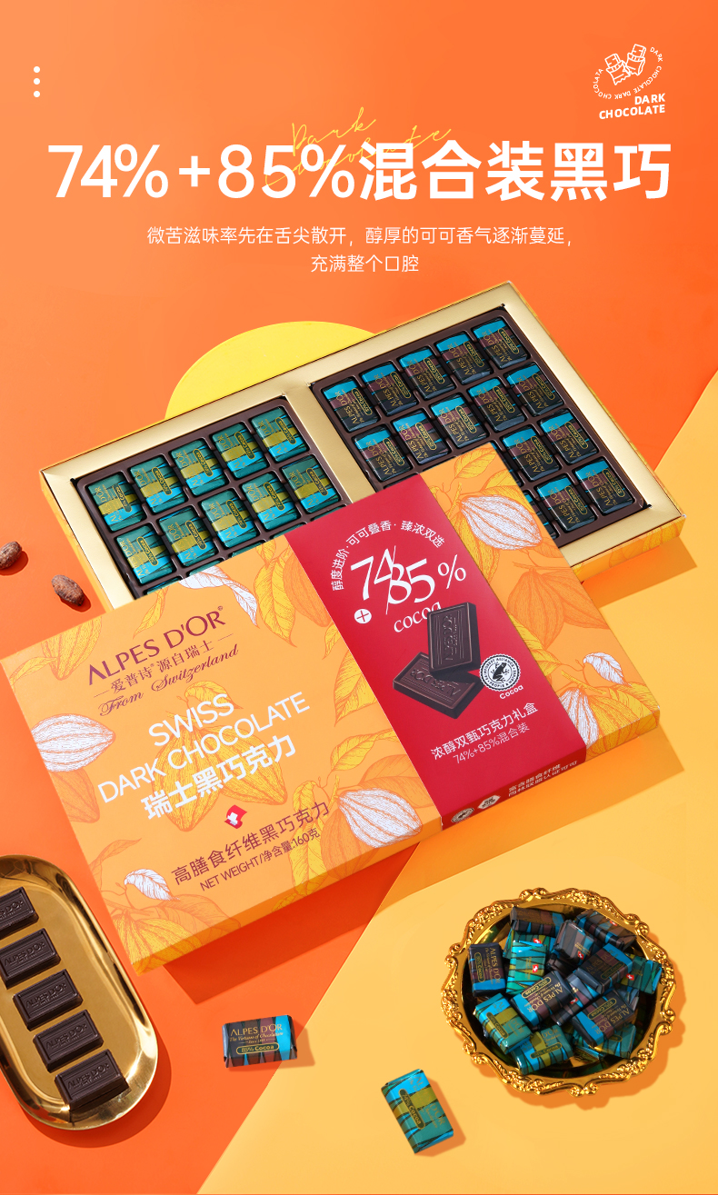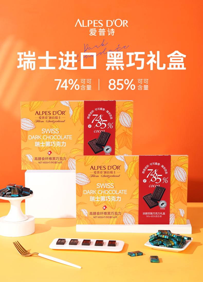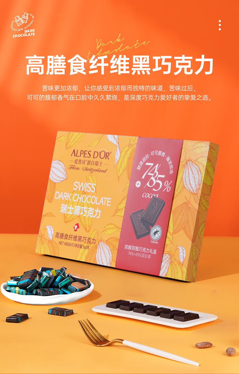 爱普诗多翡诺黑巧克力160g/045404 高膳食纤维黑巧克力