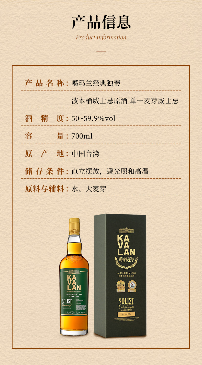 噶玛兰(Kavalan)波本桶单桶单一麦芽中国台湾威士忌