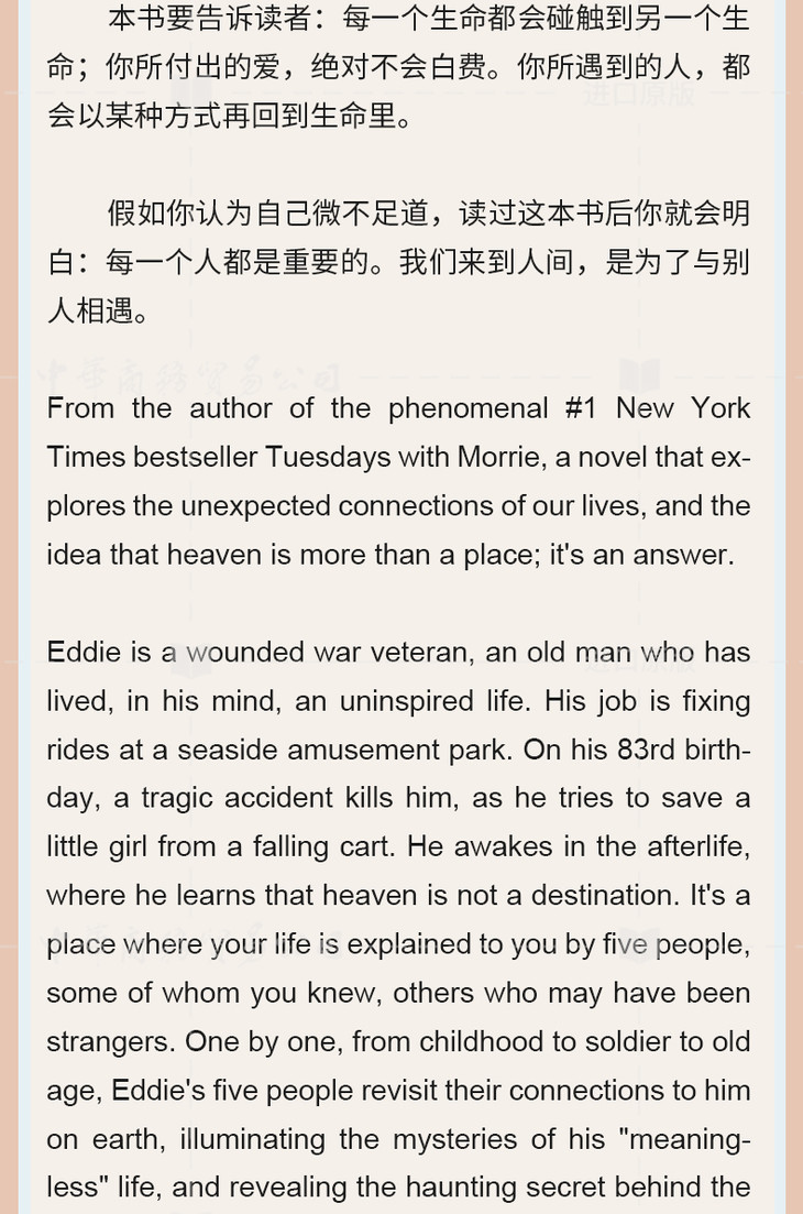 【中商原版】你在天堂里遇见的五个人英文版 Five People You Meet in Heaven