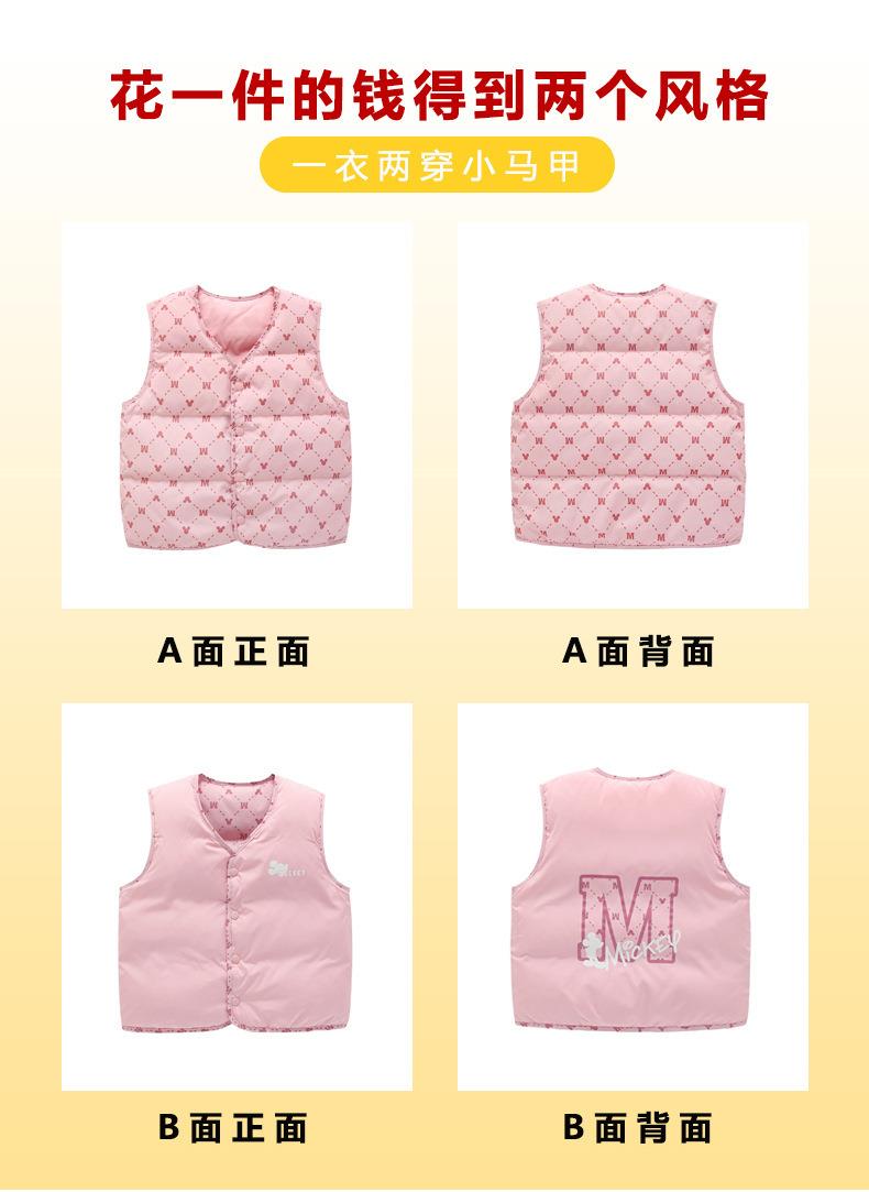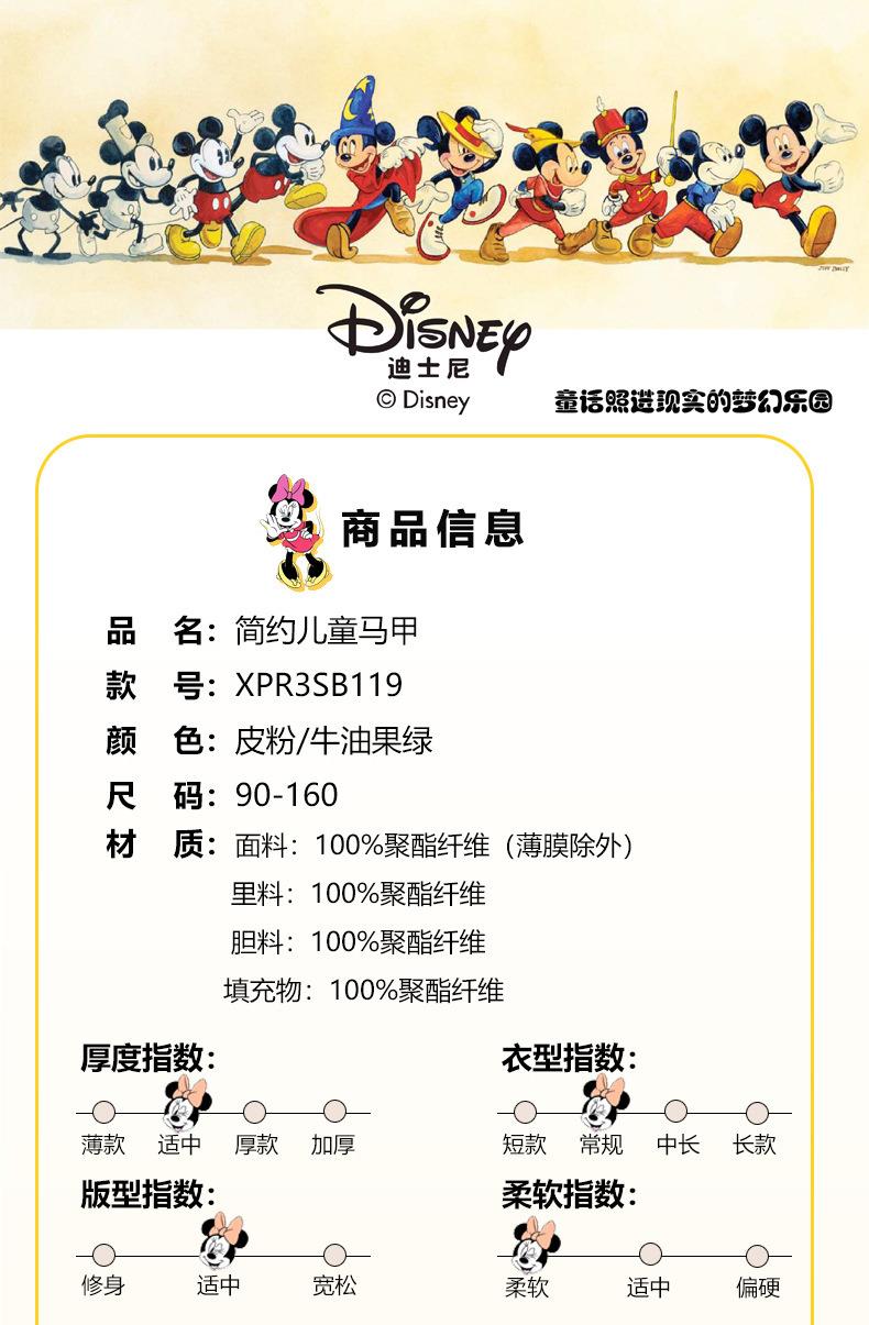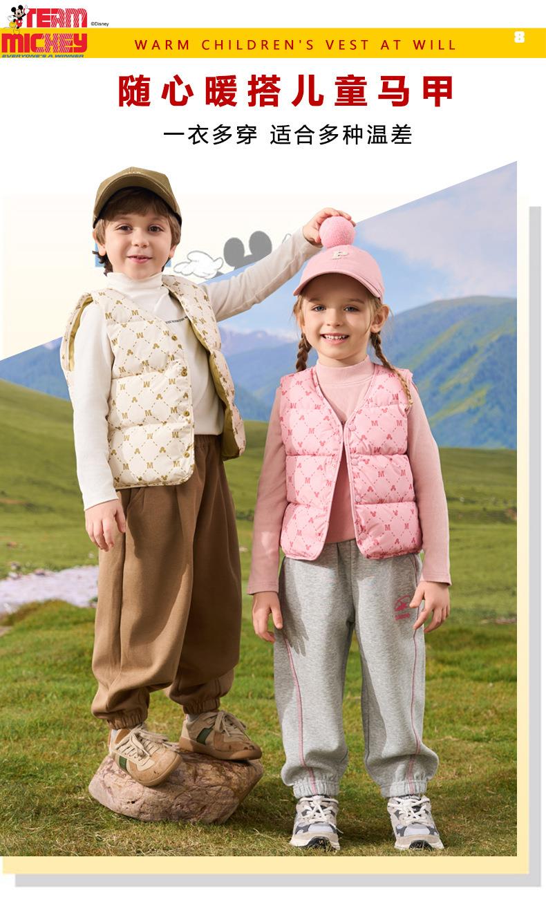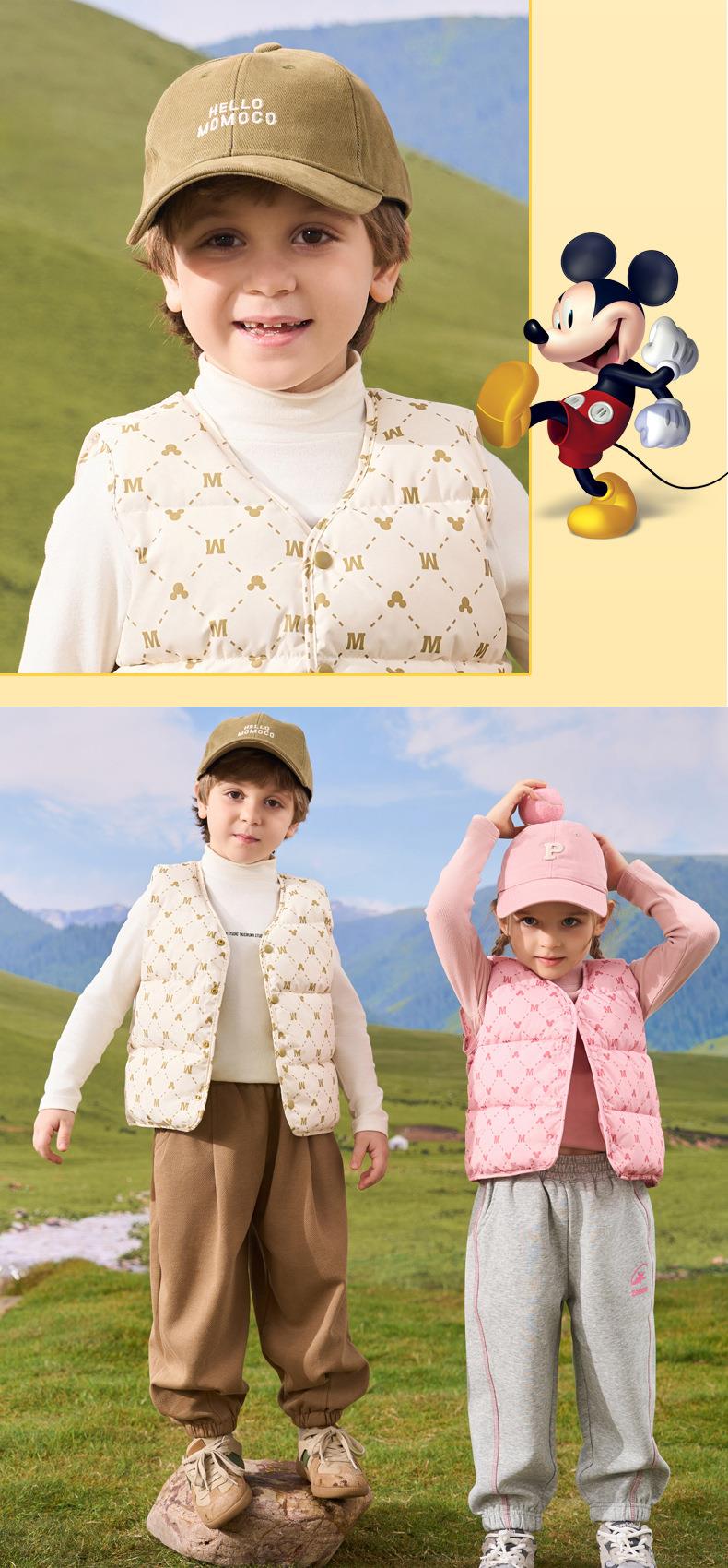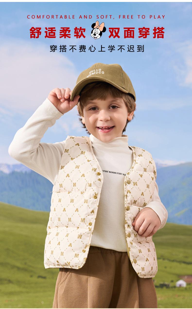 迪士尼儿童马甲男童女童棉背心2024秋冬薄款内搭宝宝外穿保暖坎肩