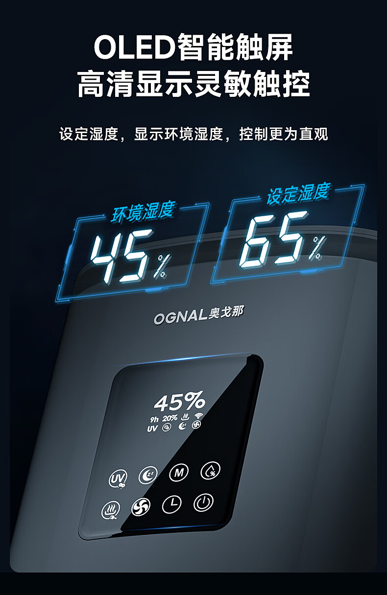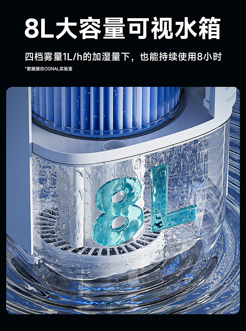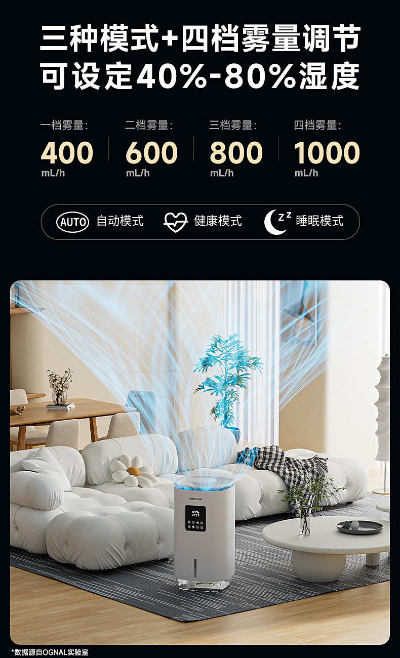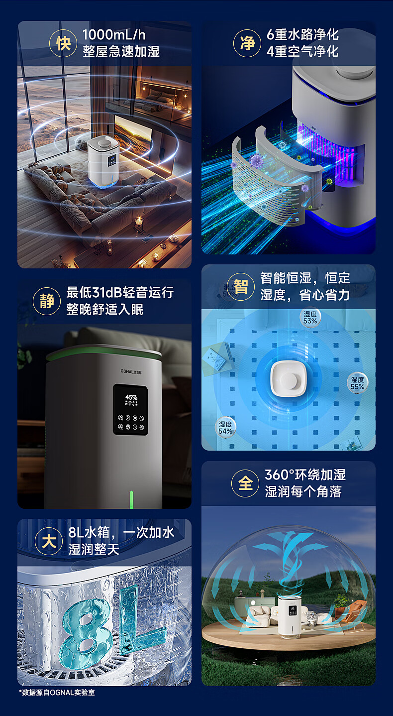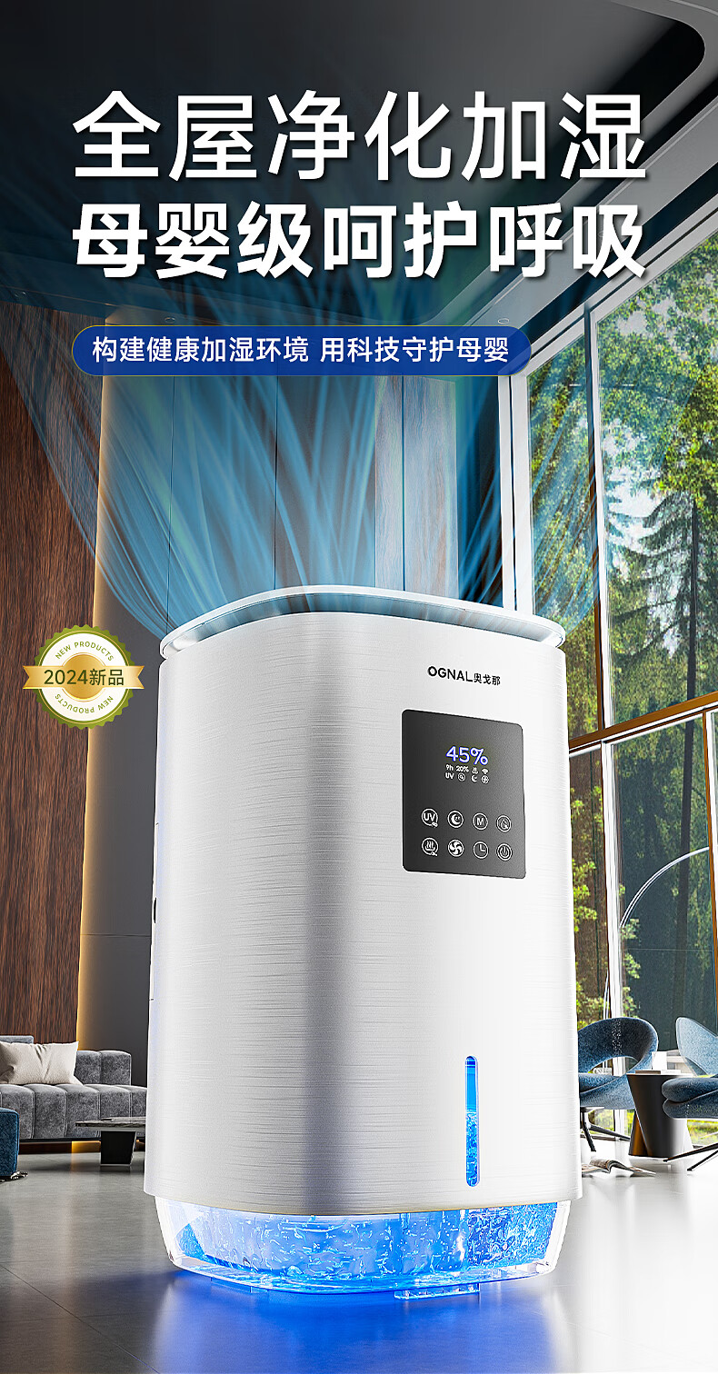 奥戈那OGNAL无雾加湿器家用轻音卧室母婴除菌空气净化大雾量落地式冷热蒸发办公室客厅大面积增湿 智能杀菌款