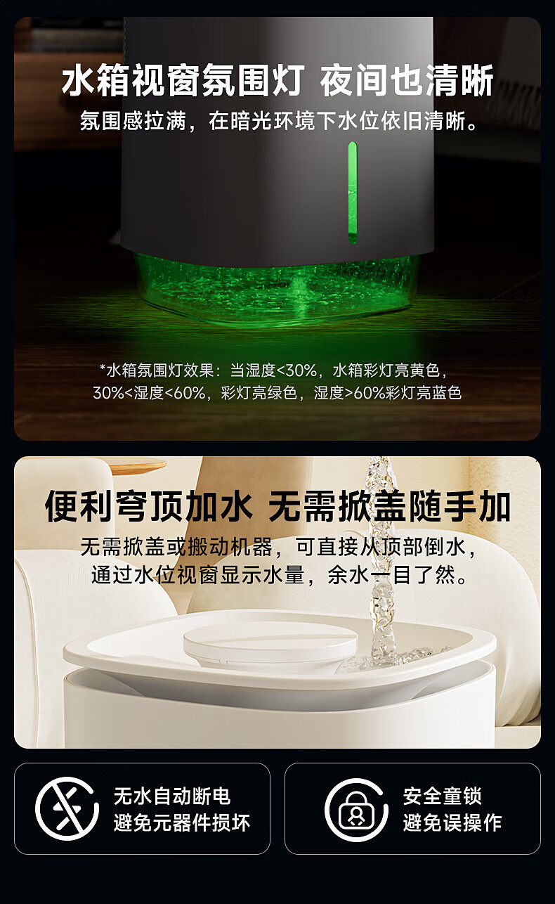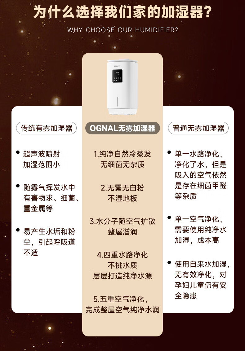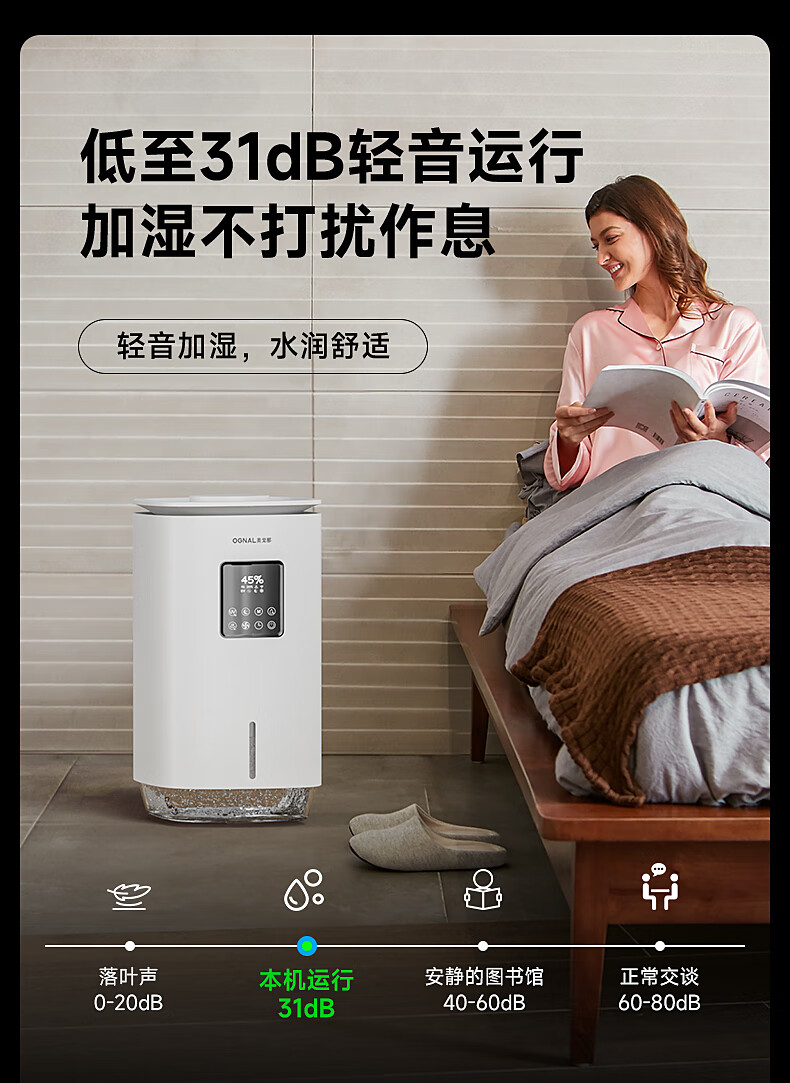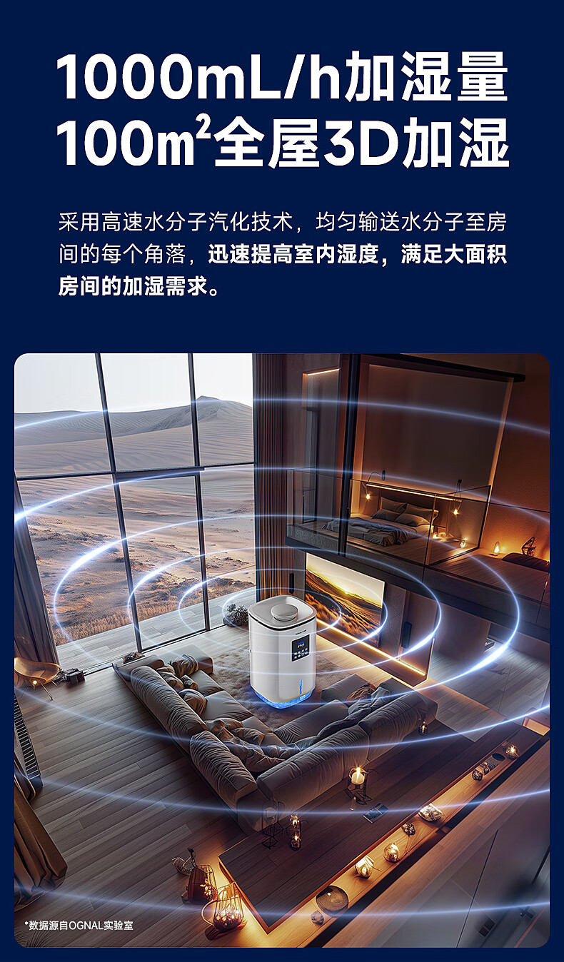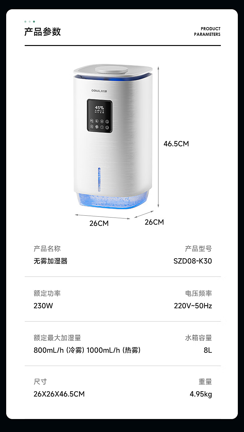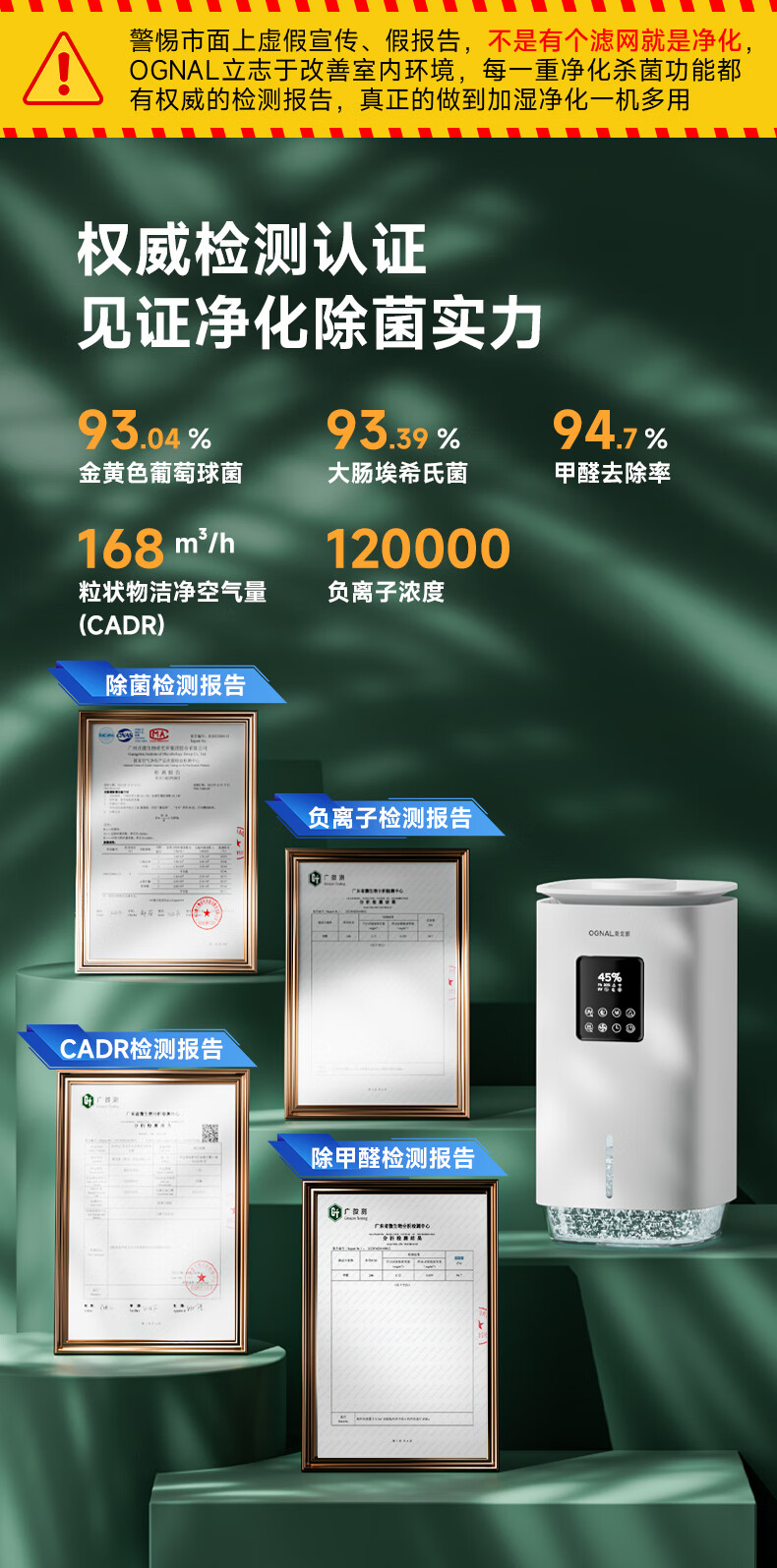 奥戈那OGNAL无雾加湿器家用轻音卧室母婴除菌空气净化大雾量落地式冷热蒸发办公室客厅大面积增湿 智能杀菌款