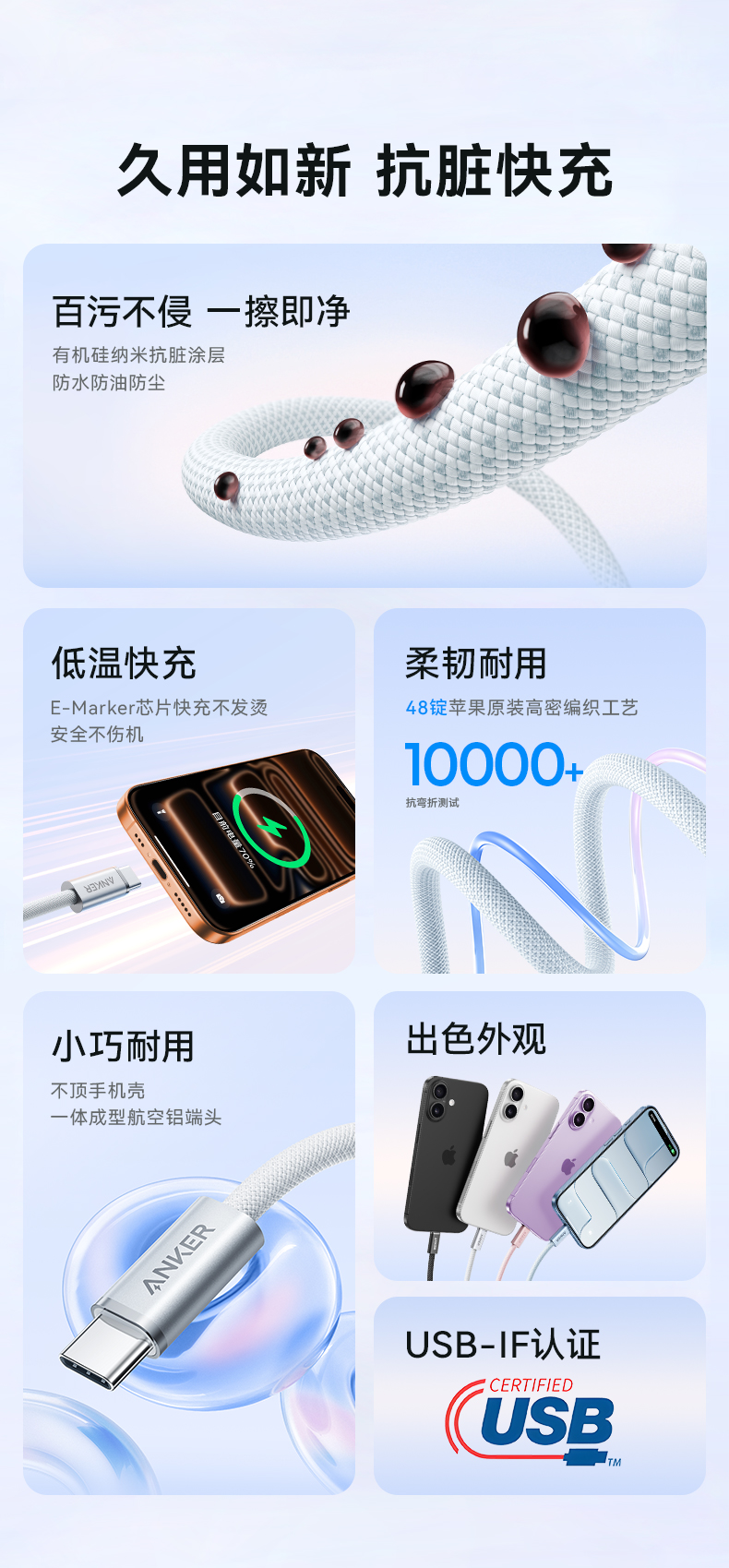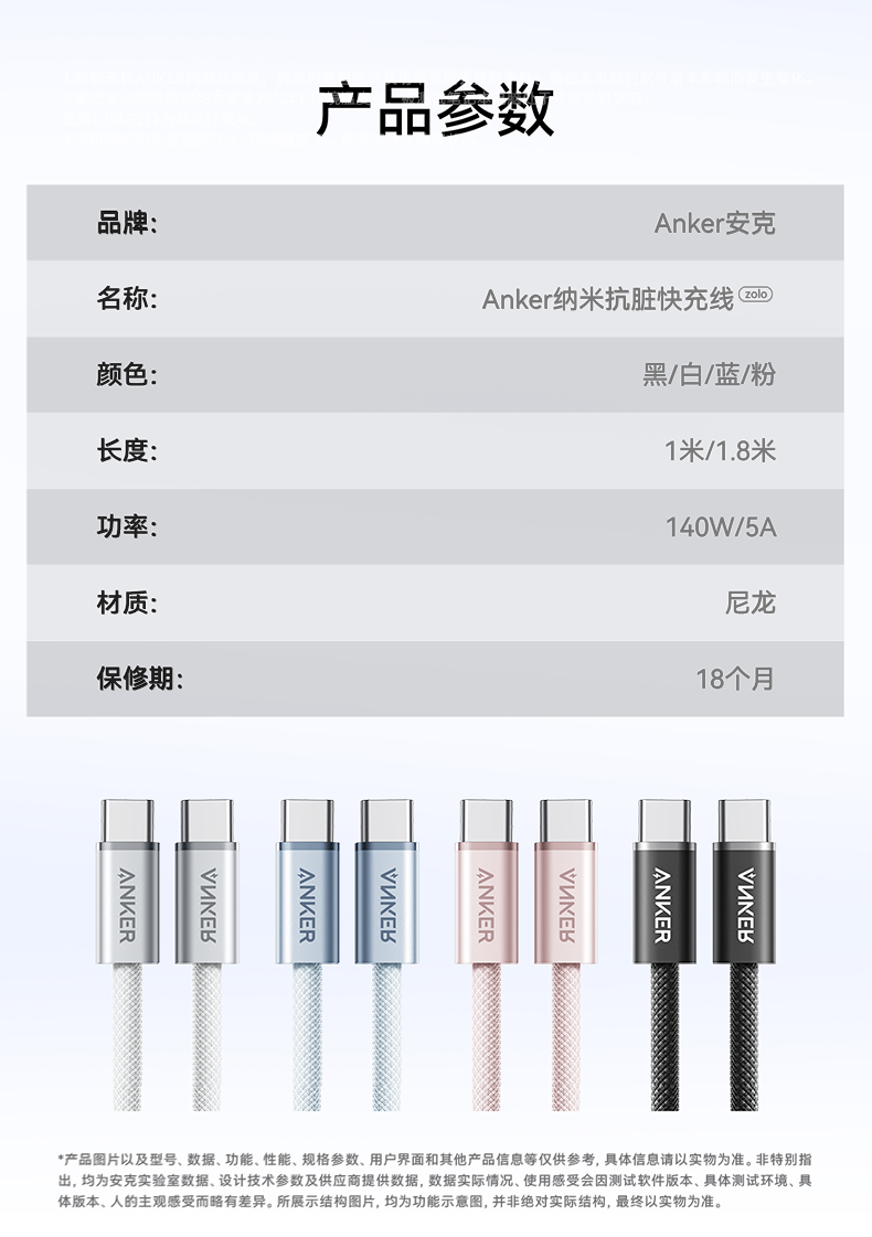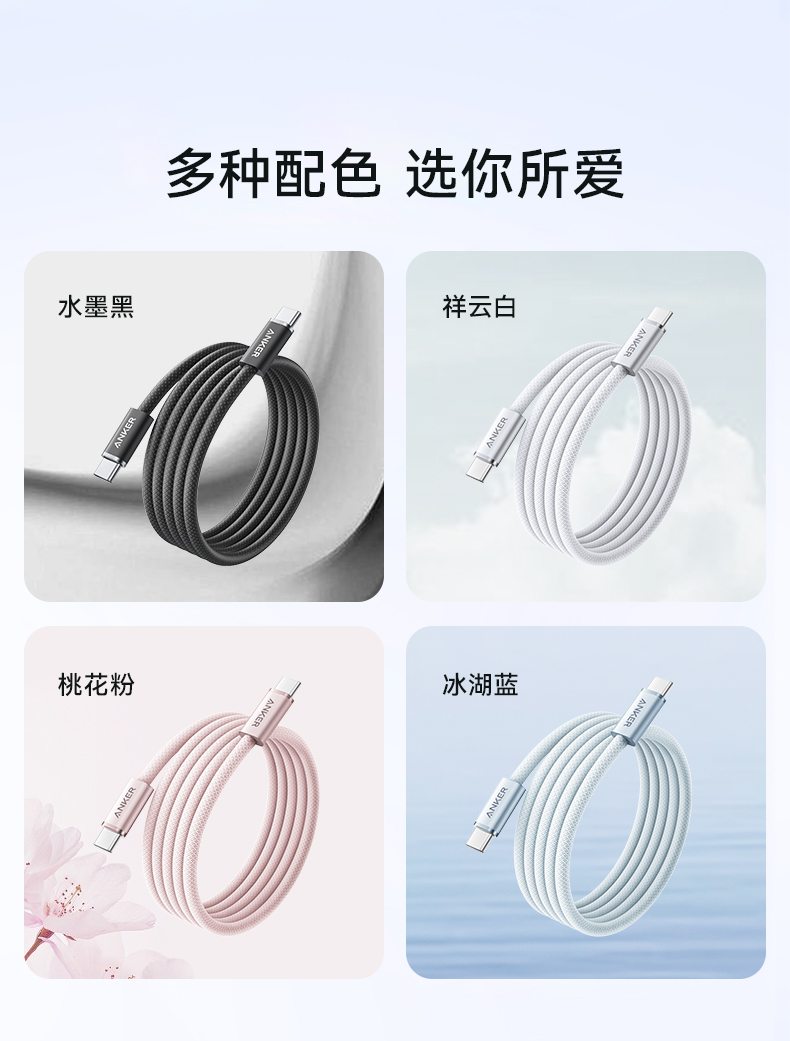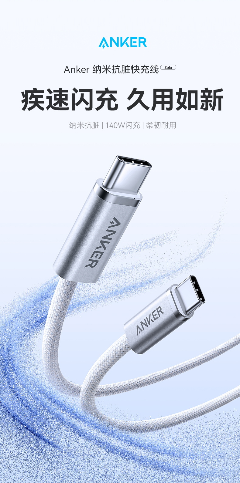 【新品】Anker安克 纳米抗脏140W C-C编制快充线 A8060