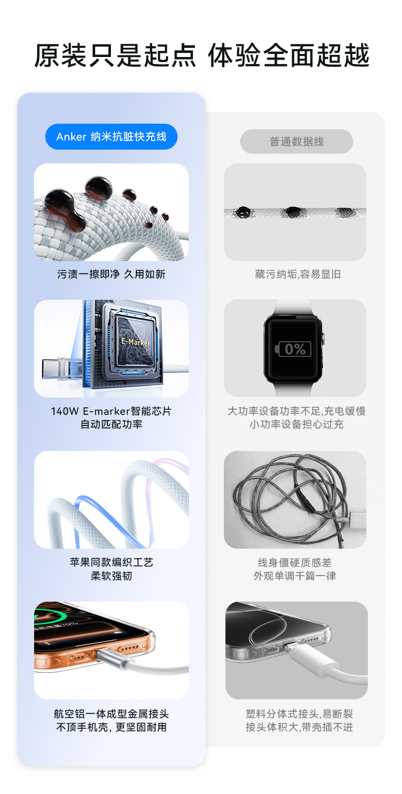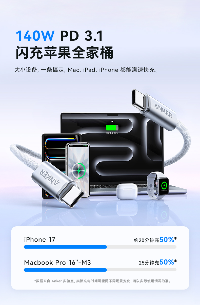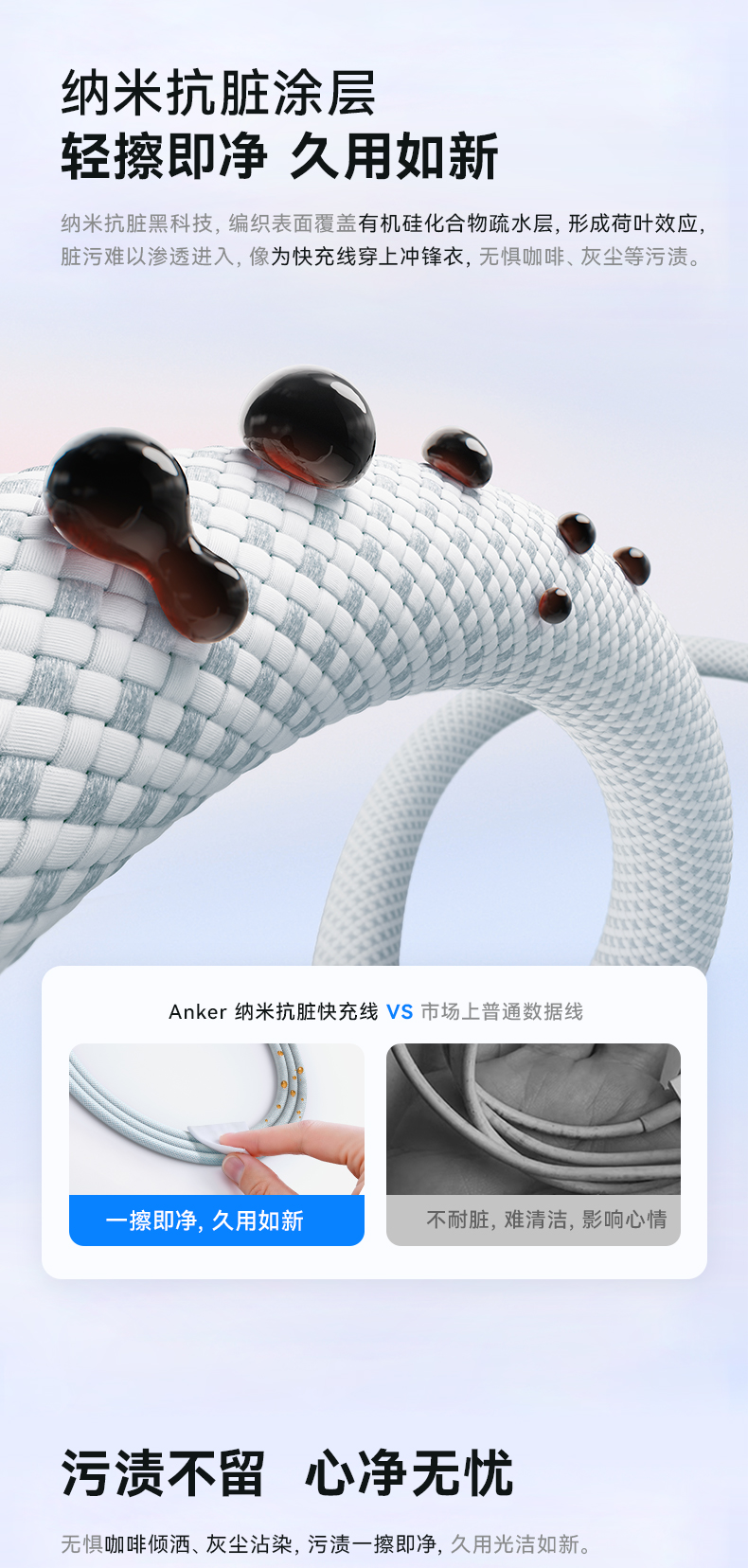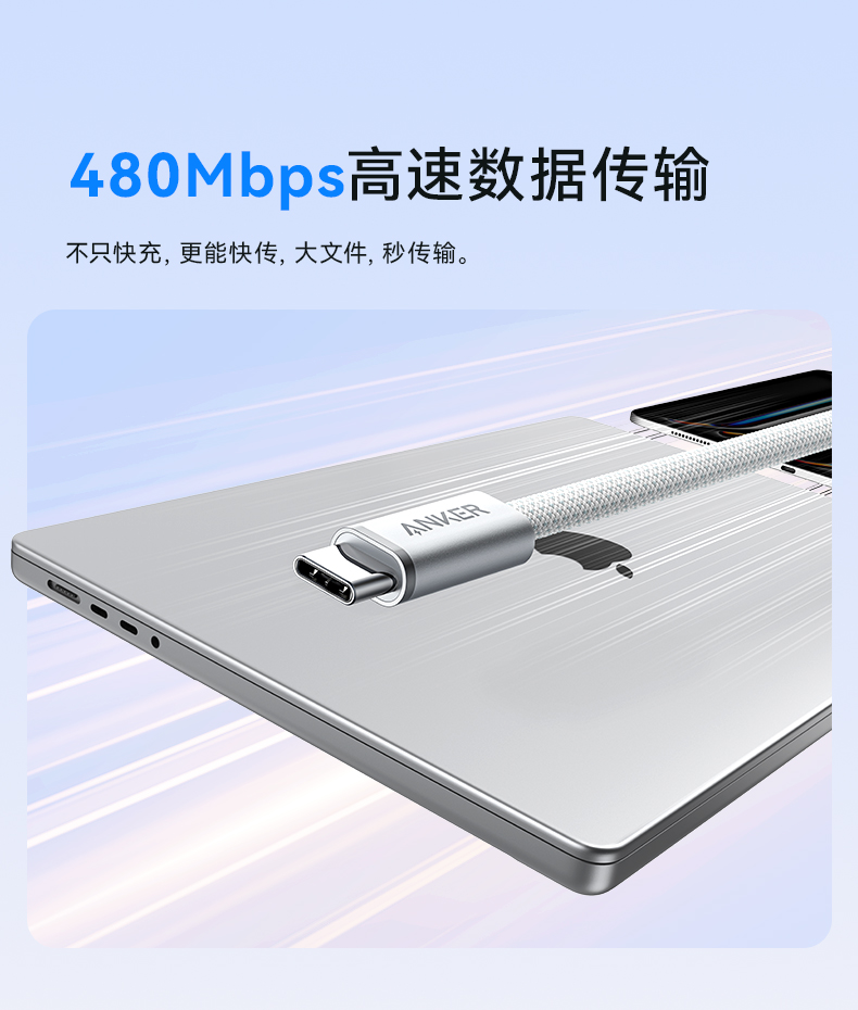 【新品】Anker安克 纳米抗脏140W C-C编制快充线 A8060