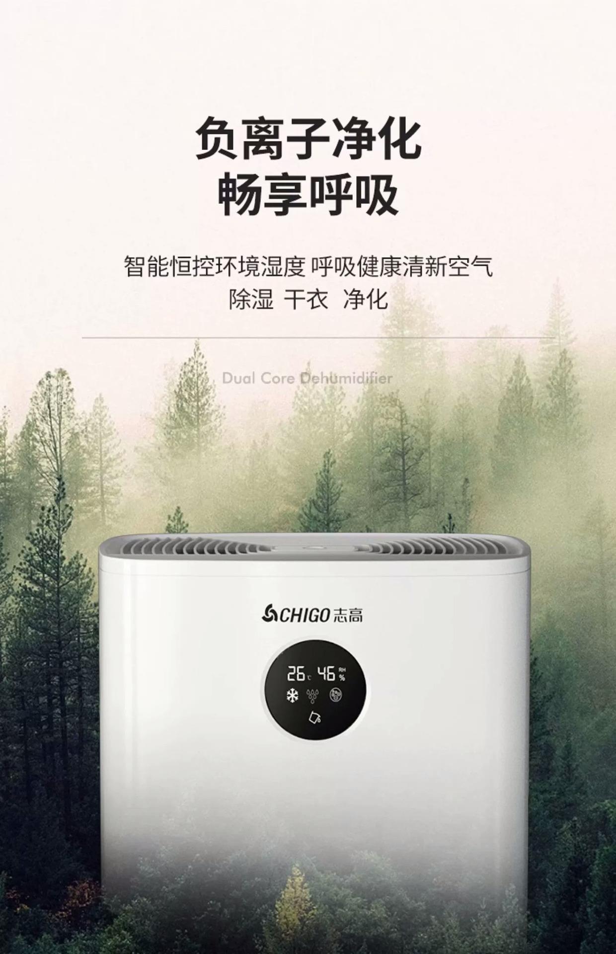 志高除湿机家用卧室抽湿机空气去湿器吸湿器除潮干燥室内负离子