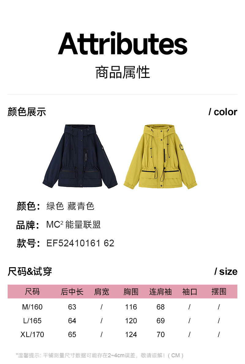 mc2 能量联盟女装连帽收腰加摇粒绒款外套-9907F5241016