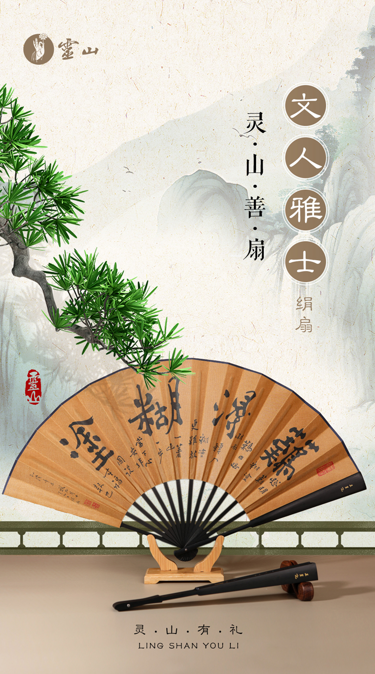灵山文人雅士绢扇