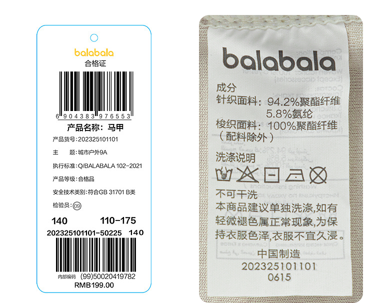 【商场同款】巴拉巴拉宝宝背心儿童马甲男童2025新款秋装柔软撞色