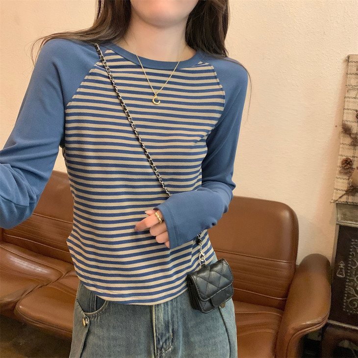 打底是换季时的常备单品,更是百搭利器 这款条纹衫有中等厚度,单穿挺括有质感 叠穿马甲、外套也不显臃肿,是一款非常好的内搭 温暖厚实又实穿百搭,贴身穿和羊绒一样舒服 撞色插肩袖设计,属于多年不过时的经典款