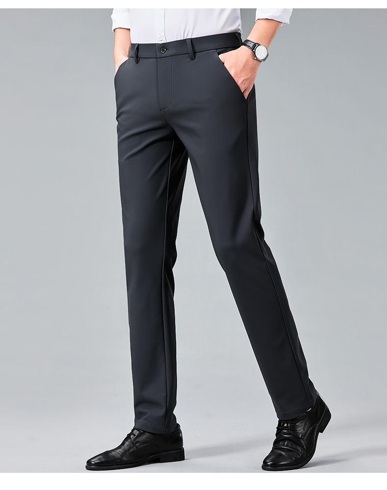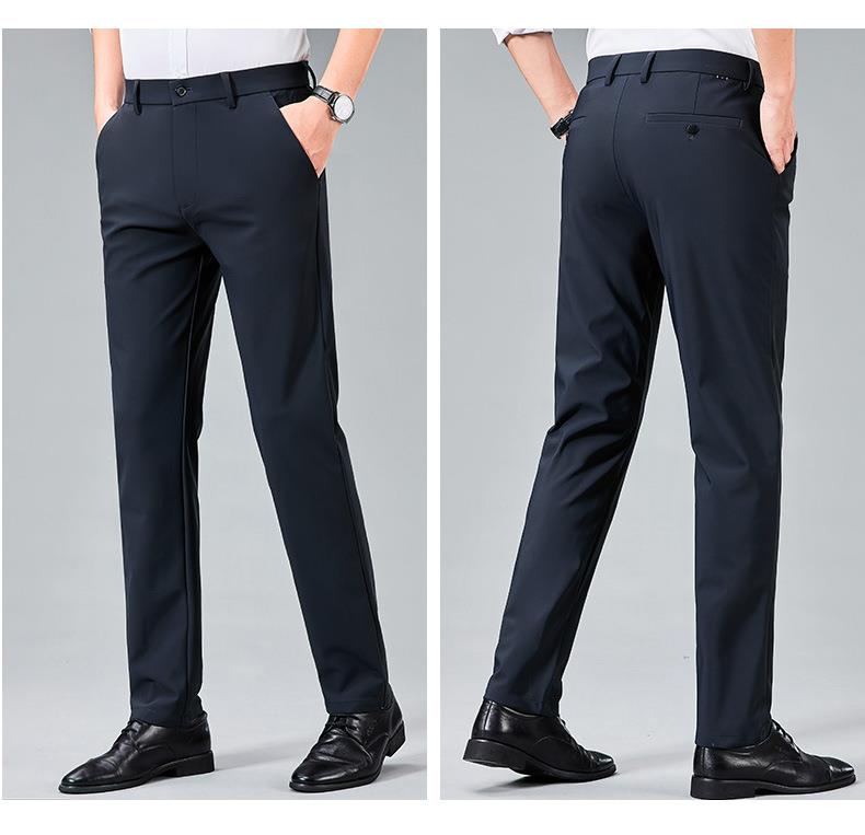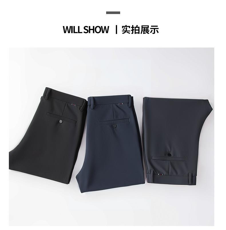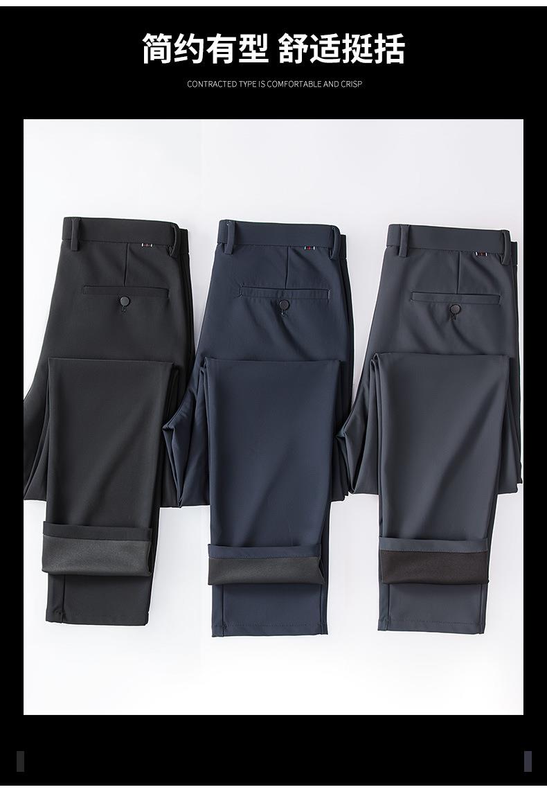 秋冬季男士加绒加厚休闲裤中年商务简约高弹爸爸正装长裤