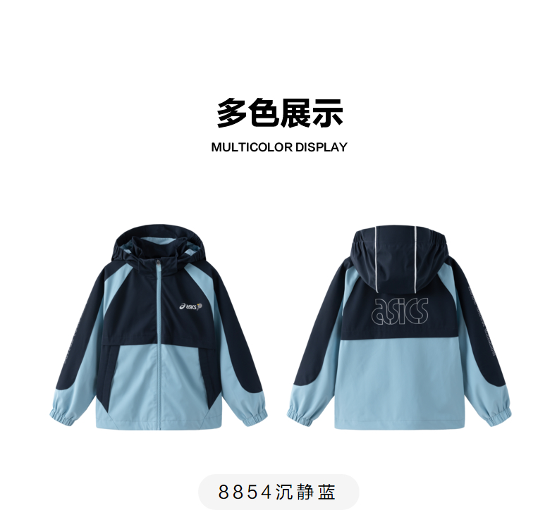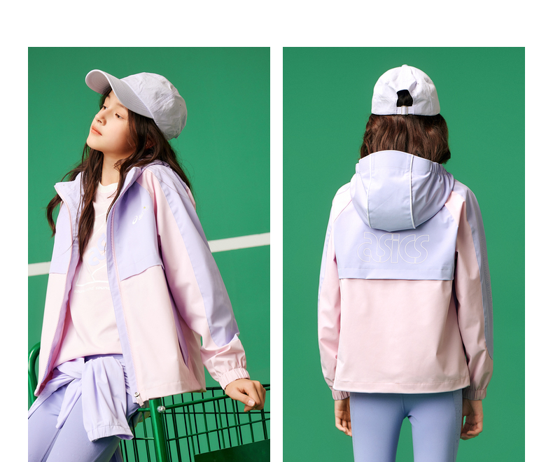 ASICS/亚瑟士童装2024年秋季夹克撞色设计拼接防水透湿运动外套新