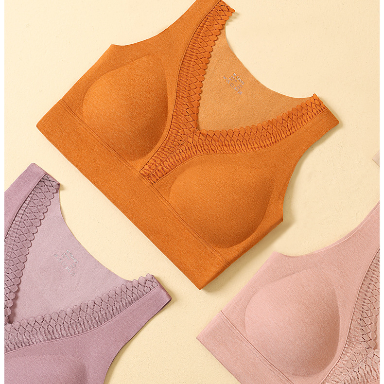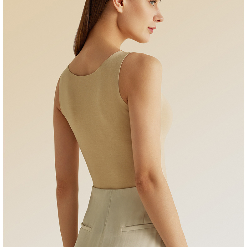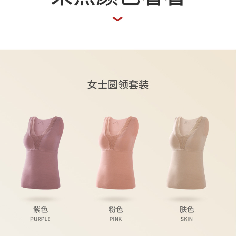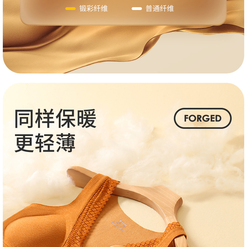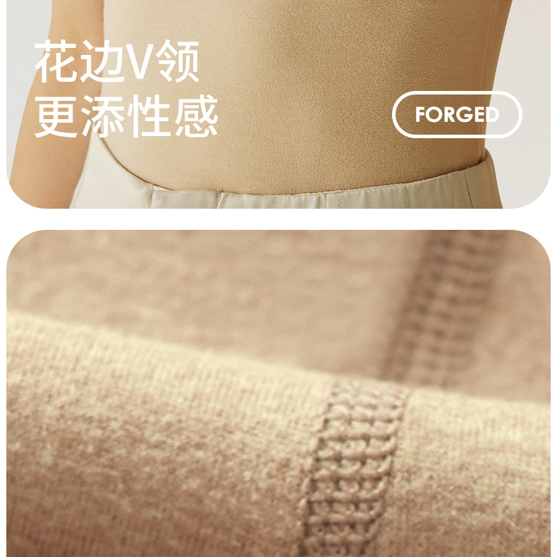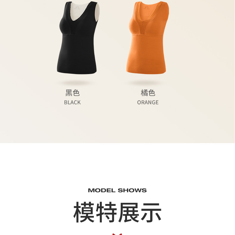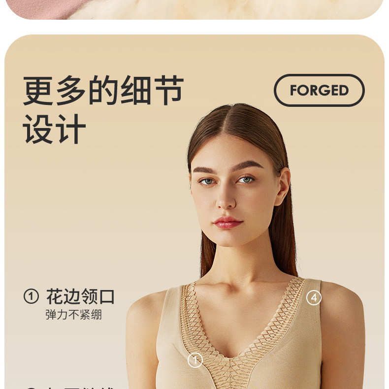 秋冬新款锻彩绒保暖背心带胸垫女士V领花边无痕内搭保暖