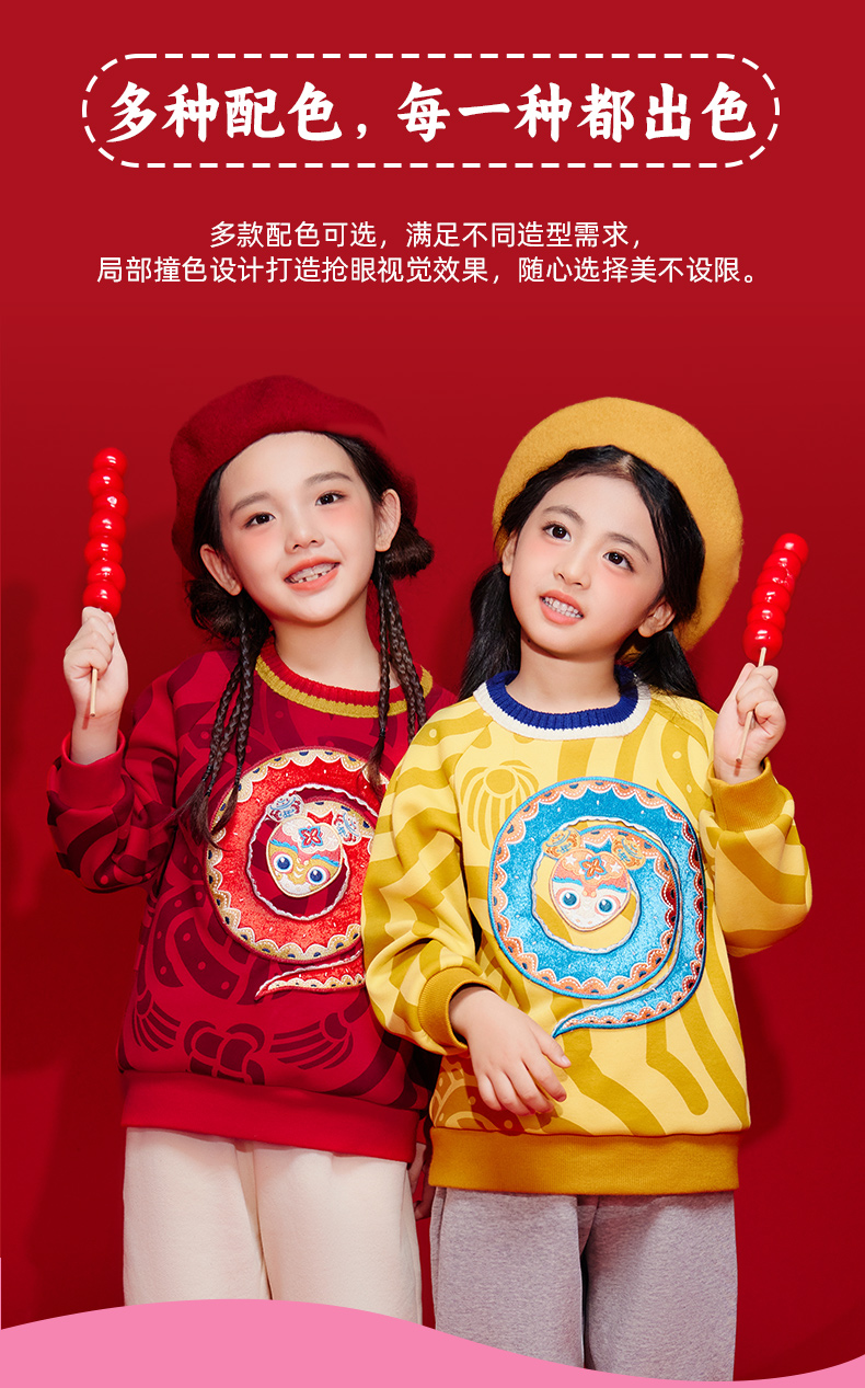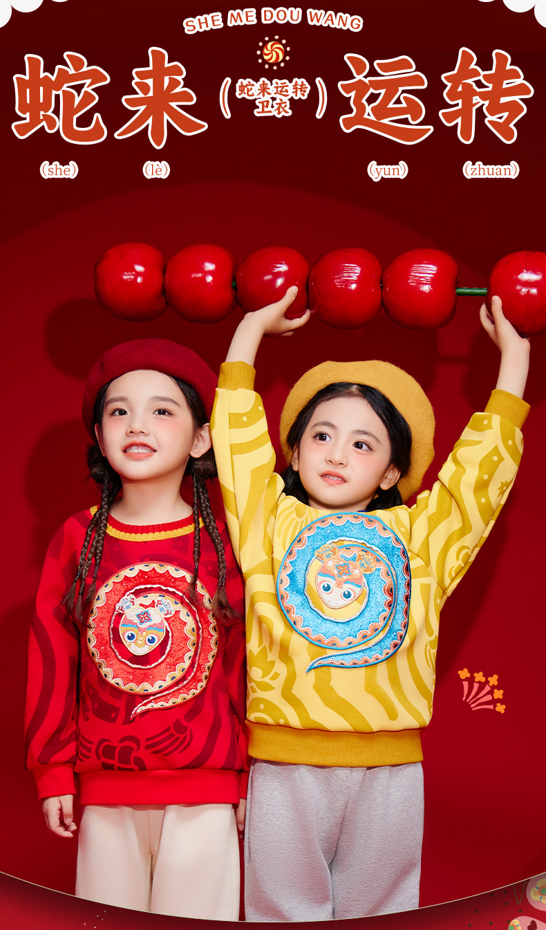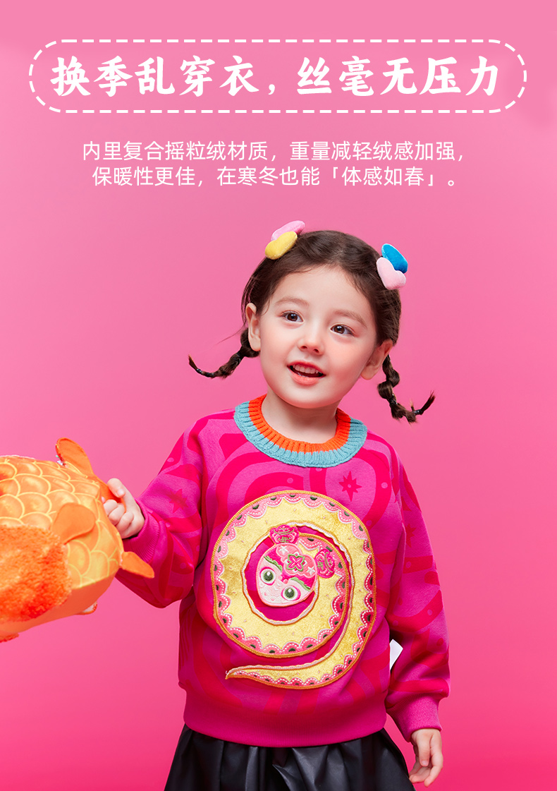 年衣童装男女童卫衣秋冬儿童长袖t恤女童打底衫套头上衣加绒蛇来运转卫衣