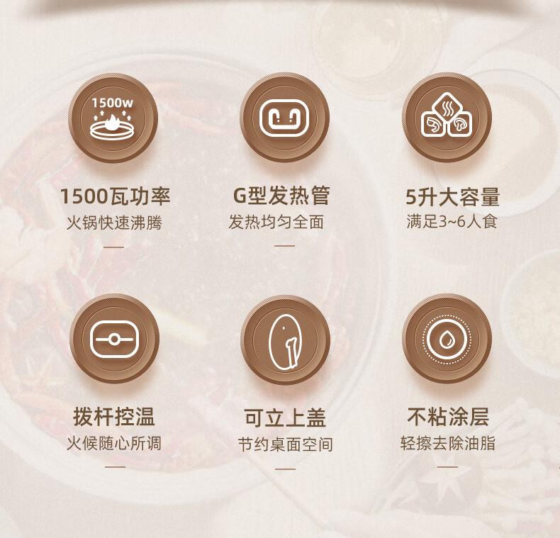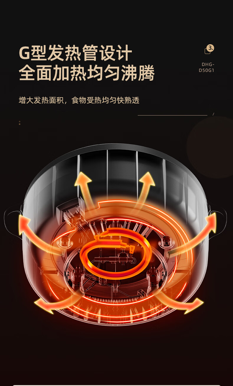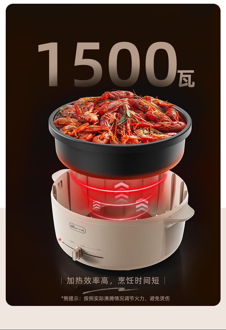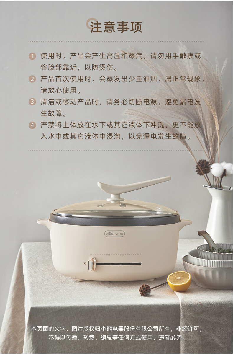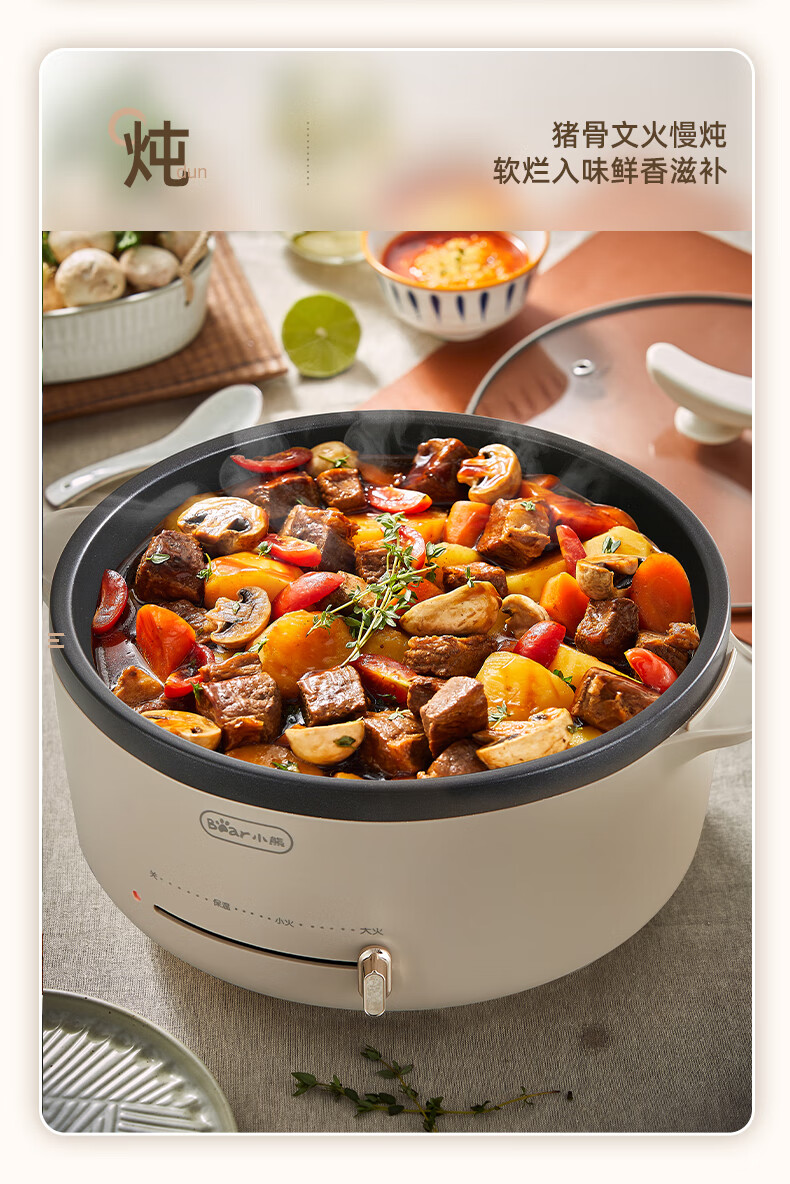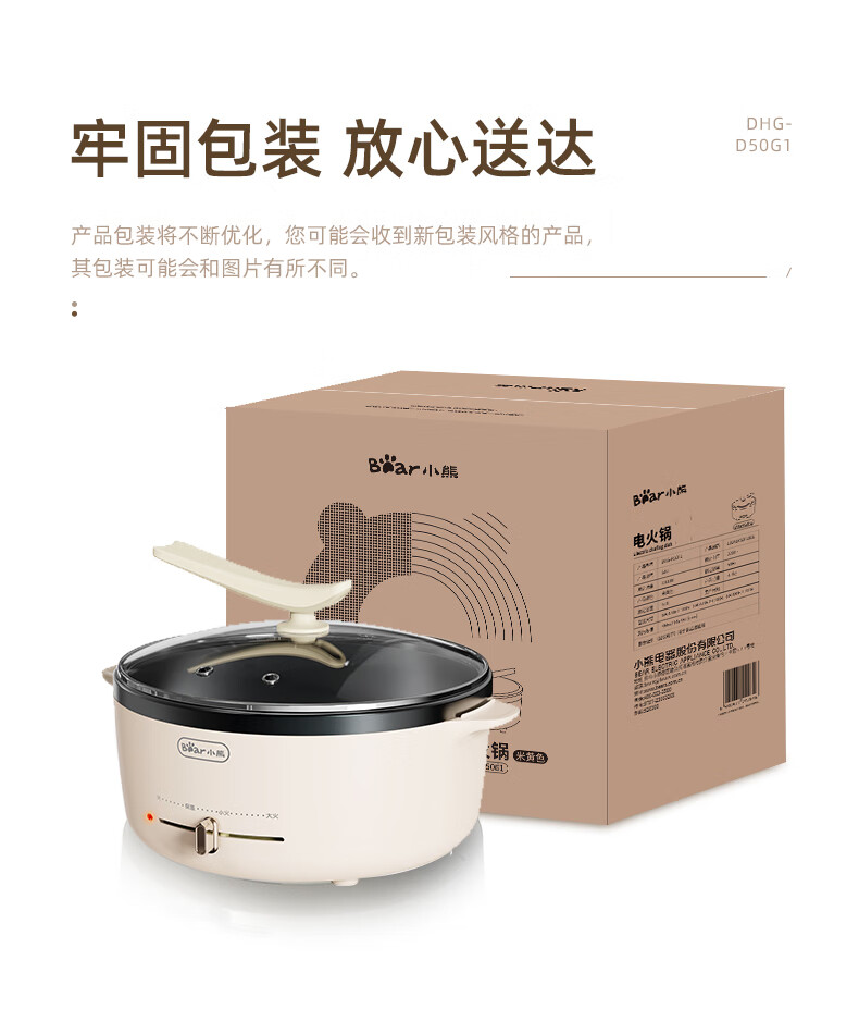 小熊(Bear) 电火锅电炒锅涮锅家用电煮锅多功能焖锅煎锅 大容量大功率电热锅【ZMD安心系列】 【5升拔杆调温】DHG-D50G1