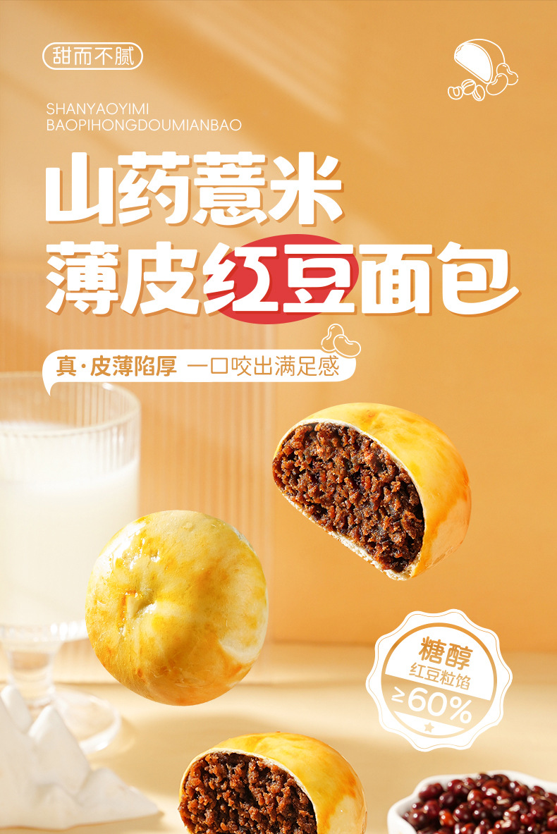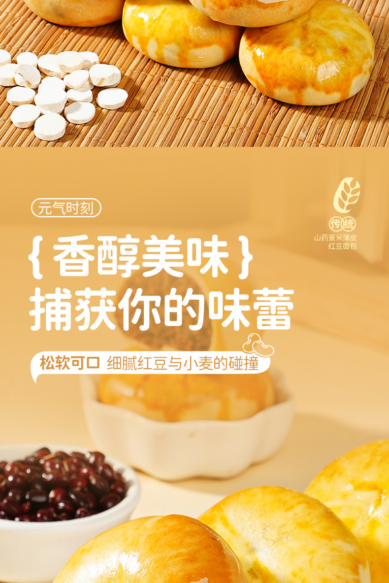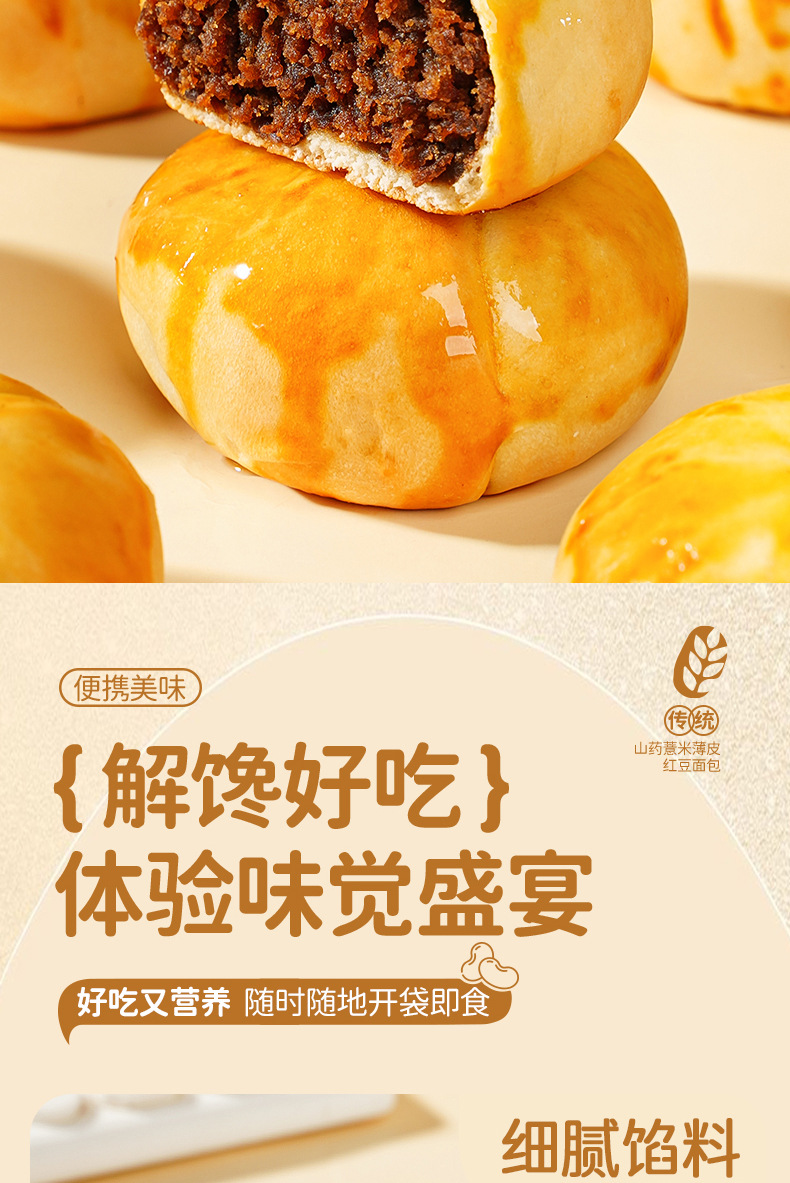 【皮薄馅多】山药薏米红豆包糕点面包零食学生营养早餐代餐零食