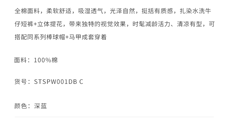 callisto深蓝全棉水洗牛仔短裤 STSPW001C