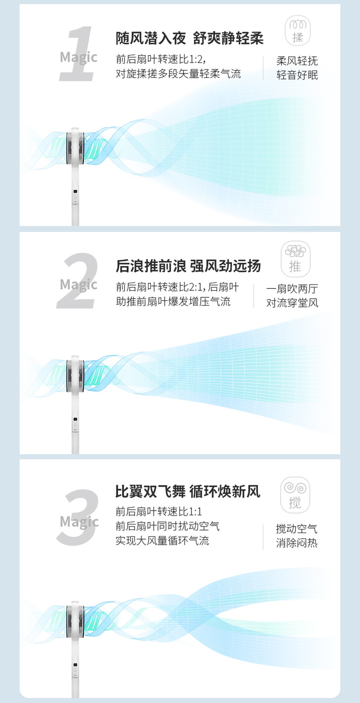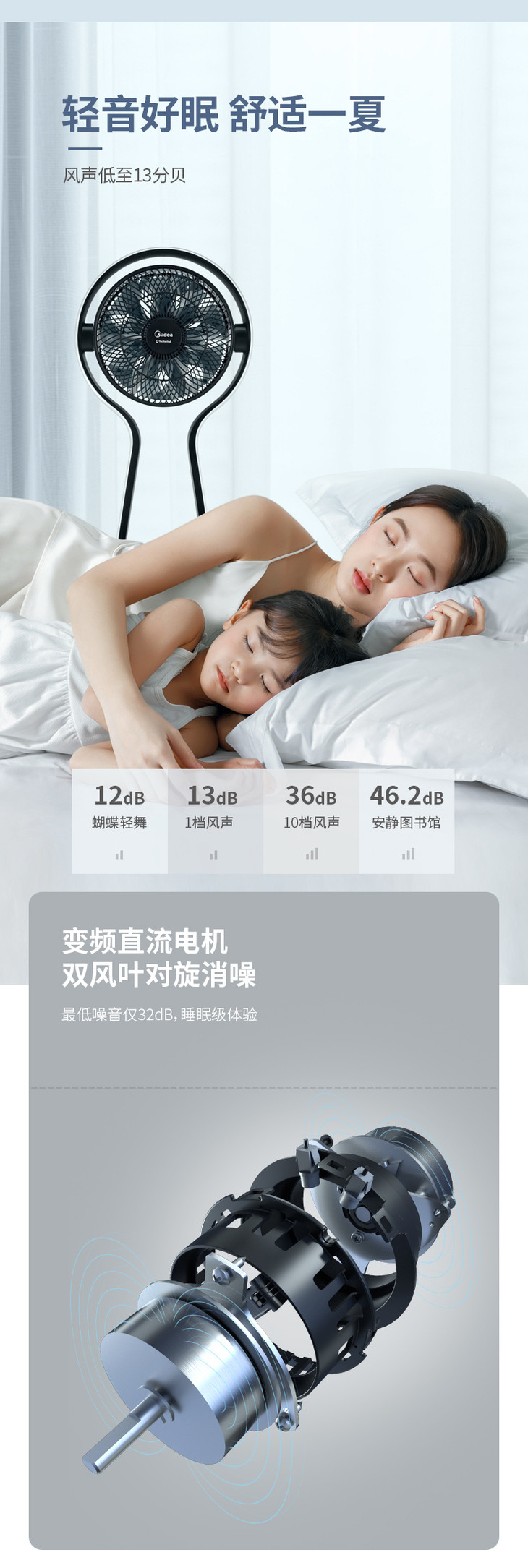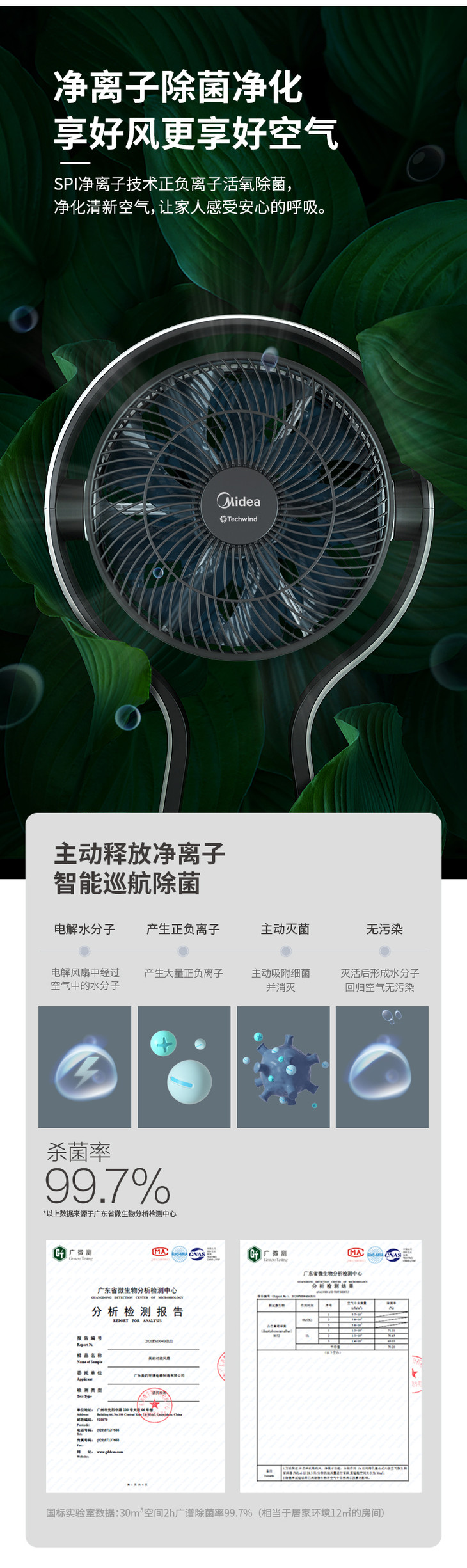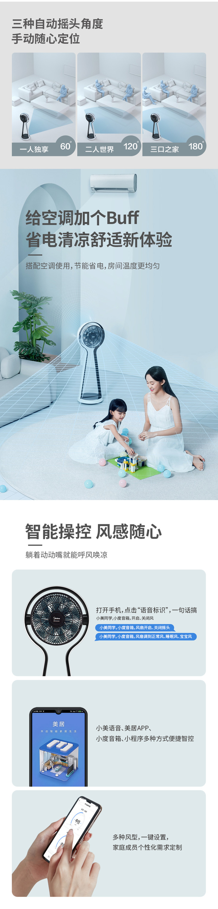 美的(509544)(Midea)电风扇家用大风力双旋对流落地扇办公室智能净离子除菌立式空气循环扇FSD25XCR