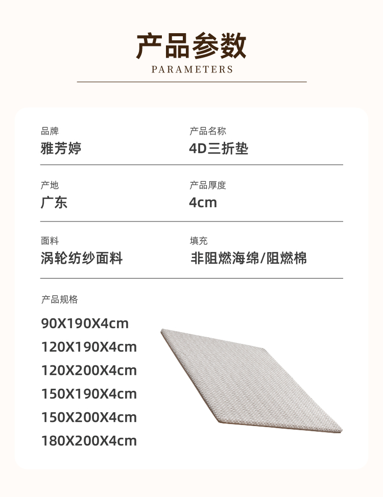 雅芳婷床垫家居床上用品4D三折垫宿舍透气床垫一垫多用床垫LK069