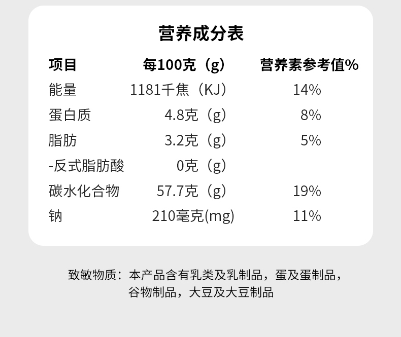 【温馨提示】本产品含有乳类及乳制品,蛋及蛋制品,谷及谷制品