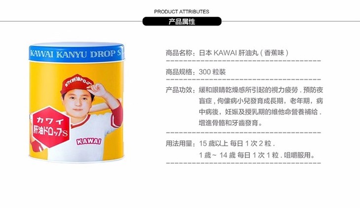 日本KAWAI鱼肝油A+D300粒(黄棒球)4987049212518