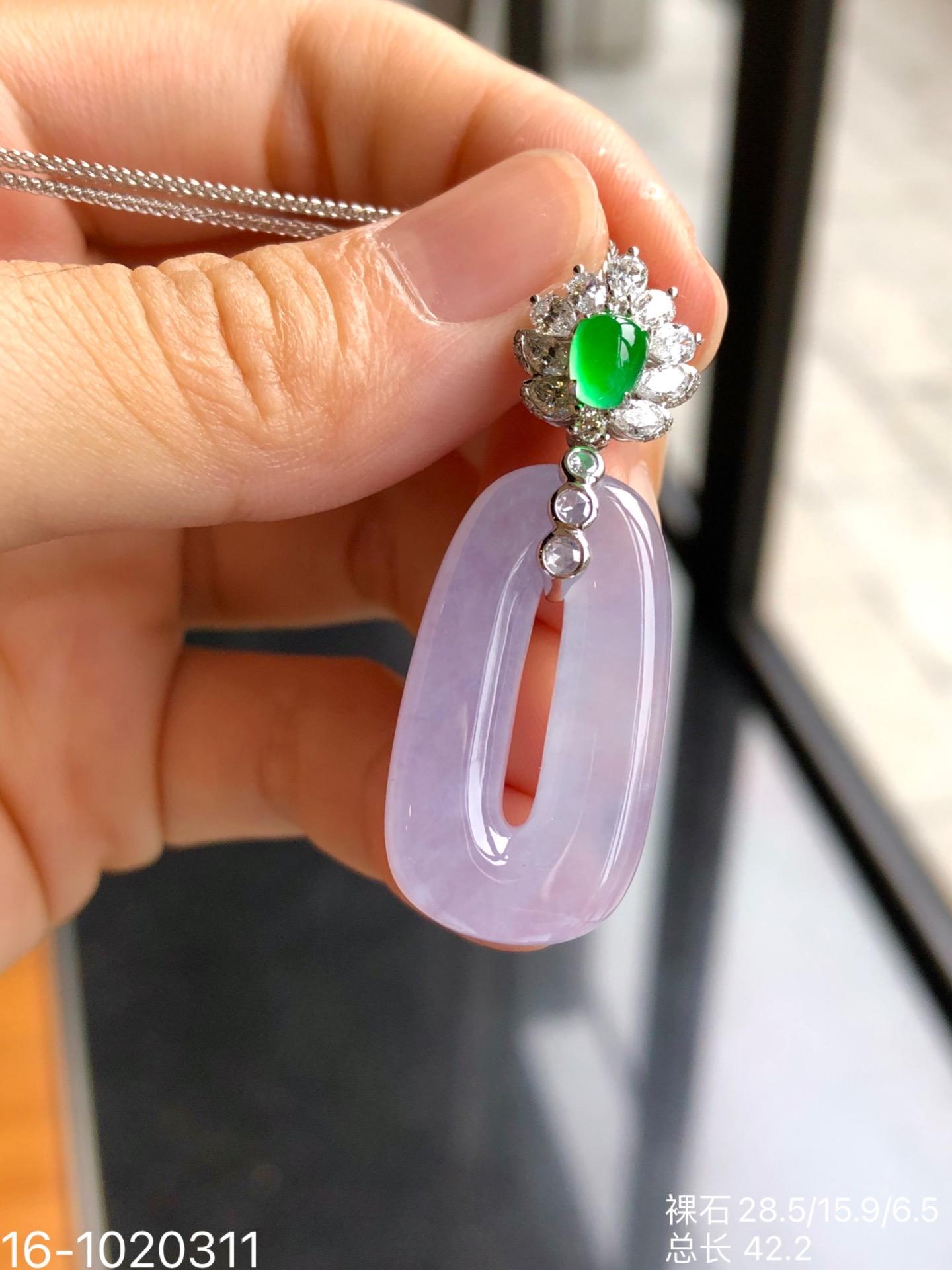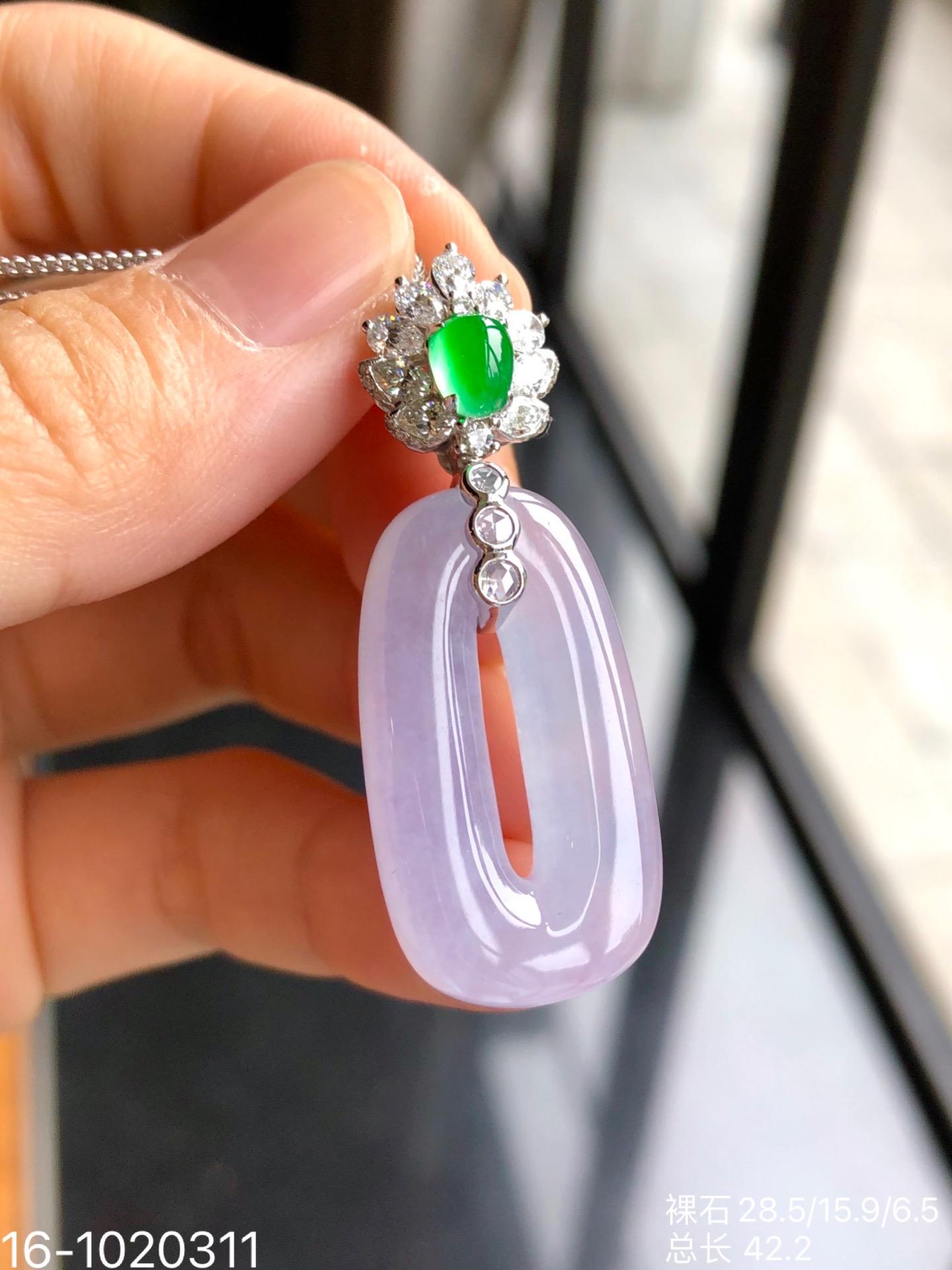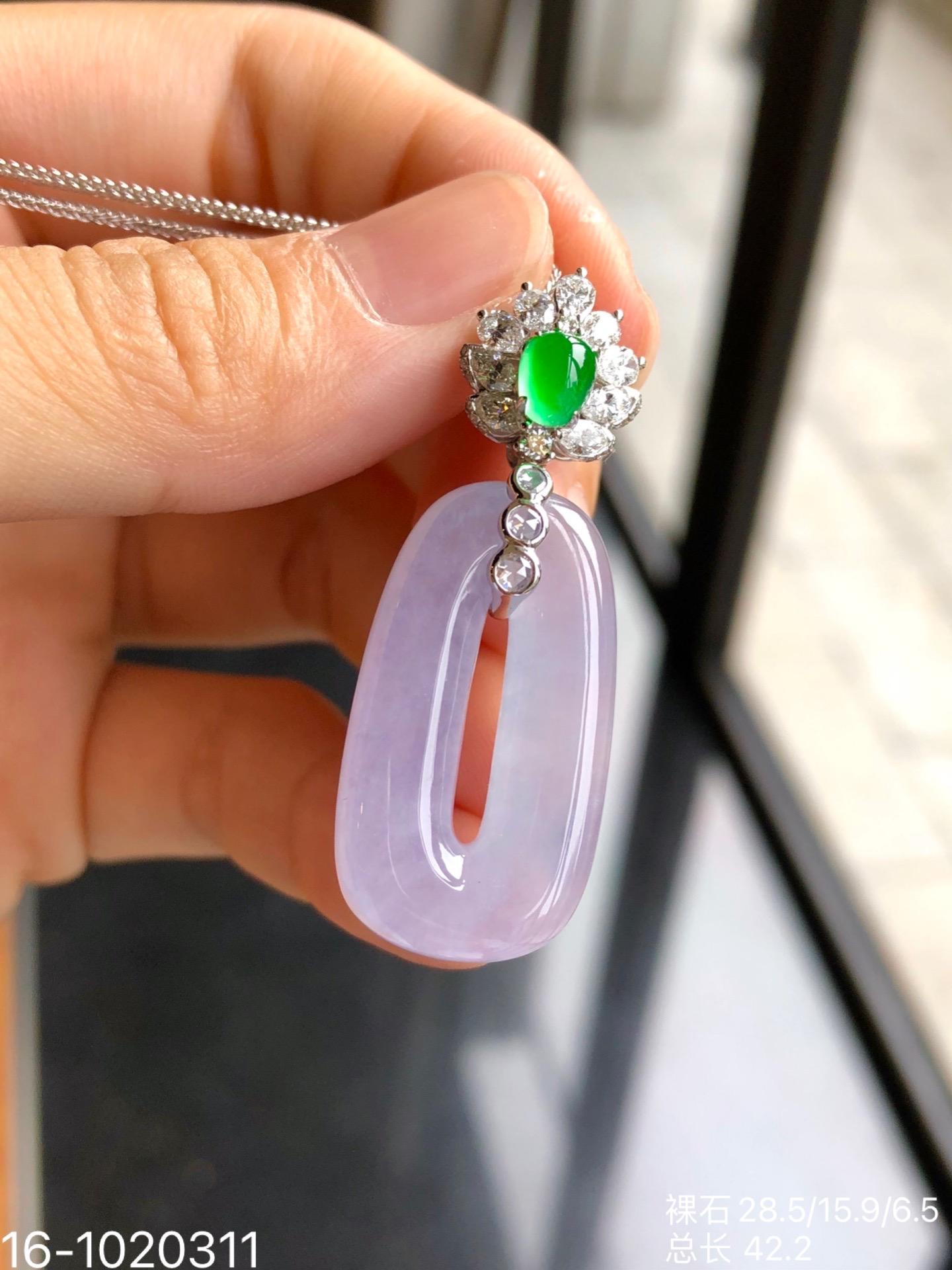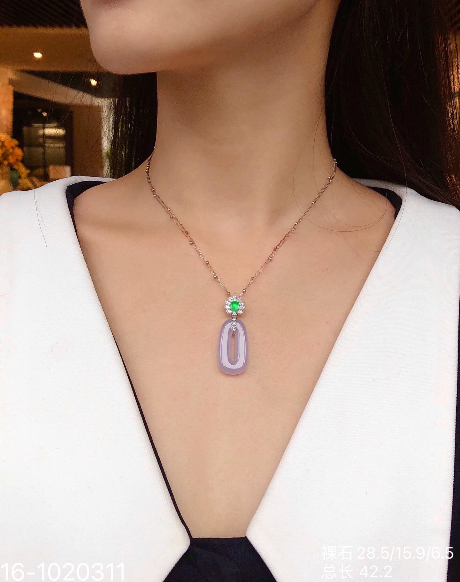 🧚♀️少女的方扣子吊坠,纯净细腻高冰种,梦幻玛卡龙紫罗兰色系,厚庄且水润感满满,线条流畅优美,像少女般充满胶原蛋白[偷笑],纯情而生动!新品价76999[色][色]【16-1020311】