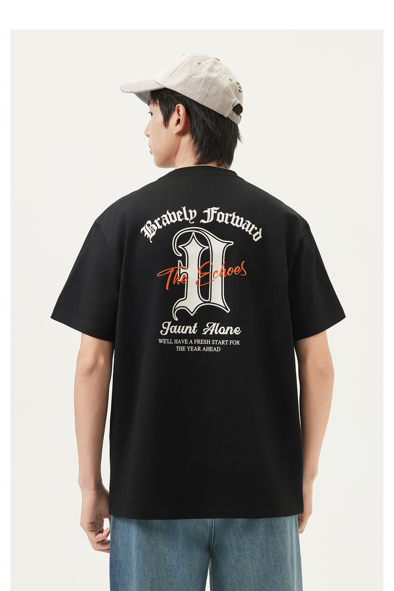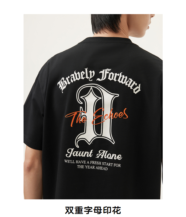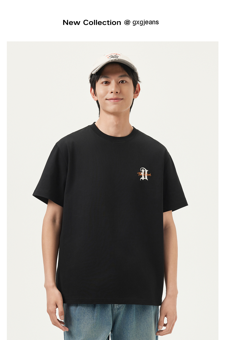gxgjeans男装 后背字母印花美式休闲宽松圆领短袖T恤男 25夏热卖