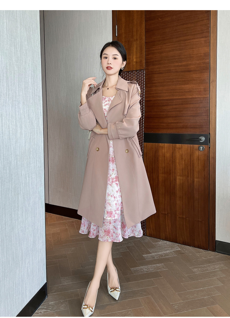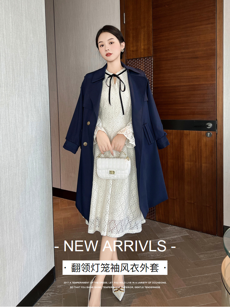 奢姿2024春季新款大码女装胖mm气质翻领灯笼袖通勤减龄风衣外套9933360008