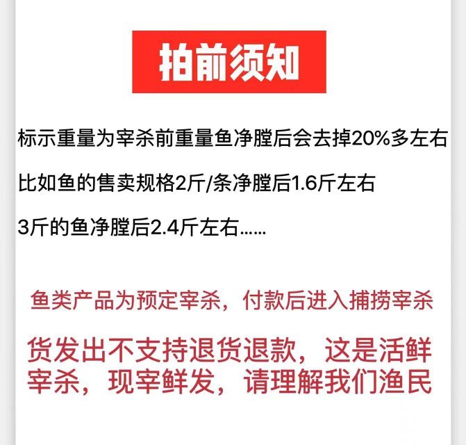 注意2:净膛鱼🐟 您拍的活鱼重量,开膛处理后,重量有下降默认给您处理好发货)