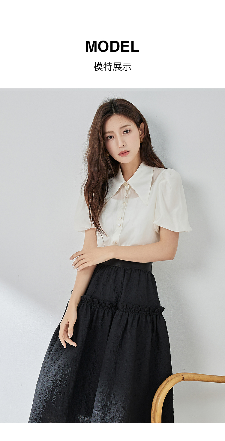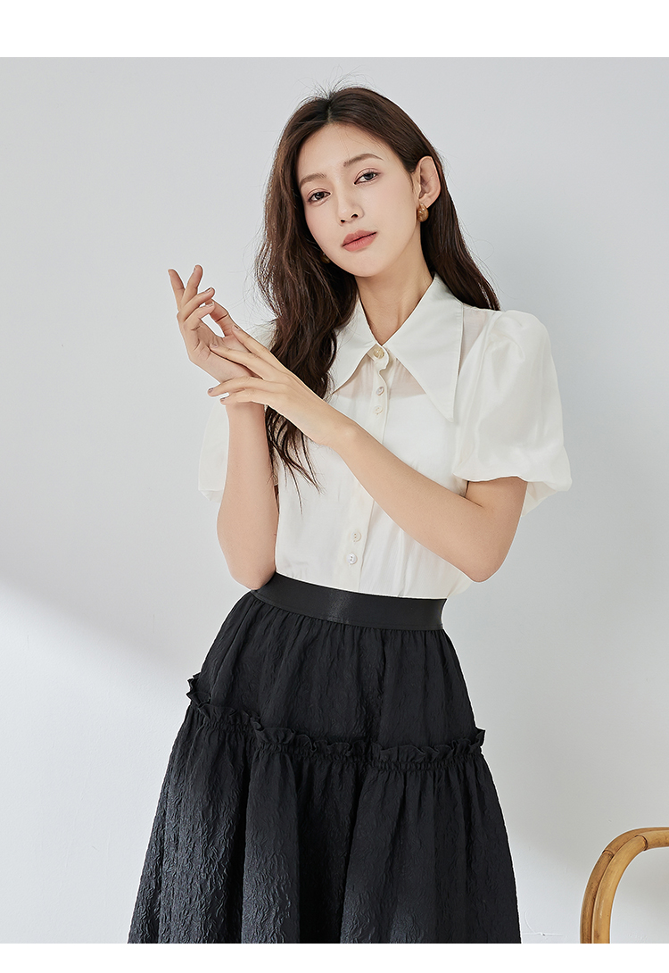 oldcolour纯色短款衬衫春季新款设计感百搭长袖上衣女P12013292