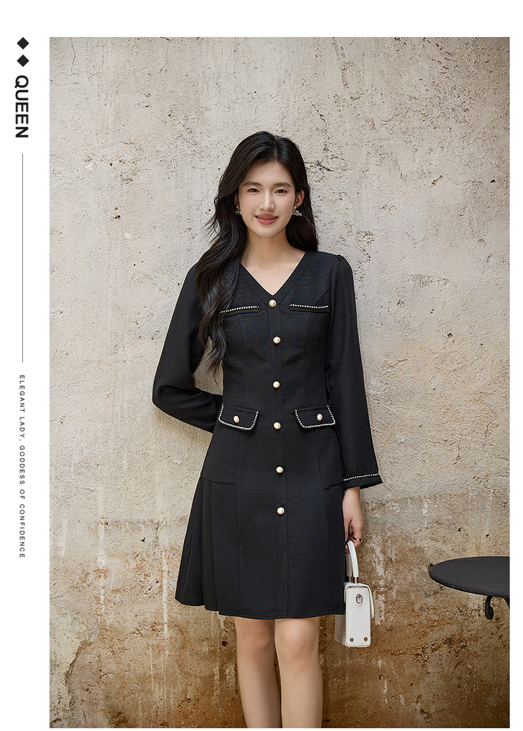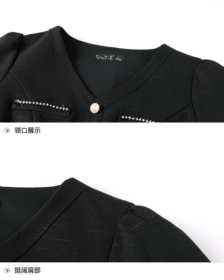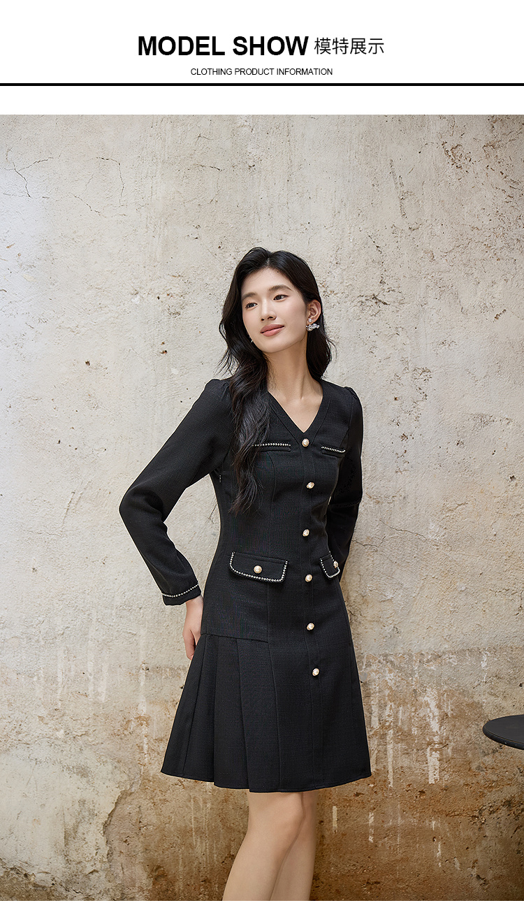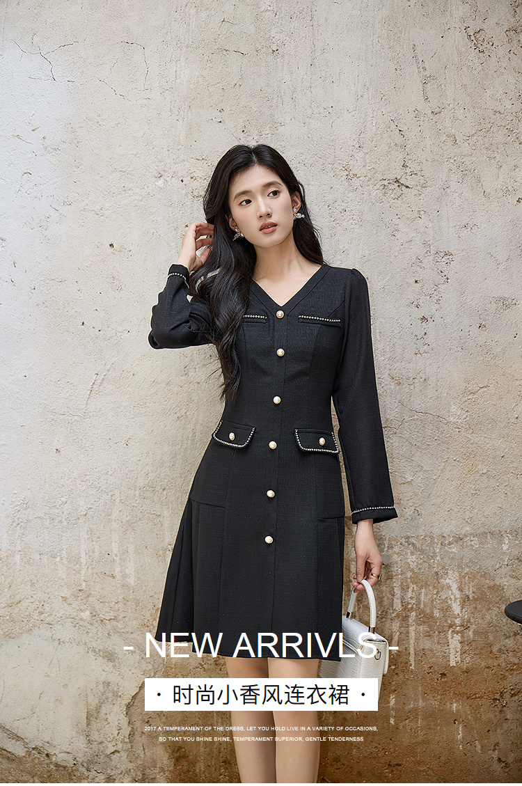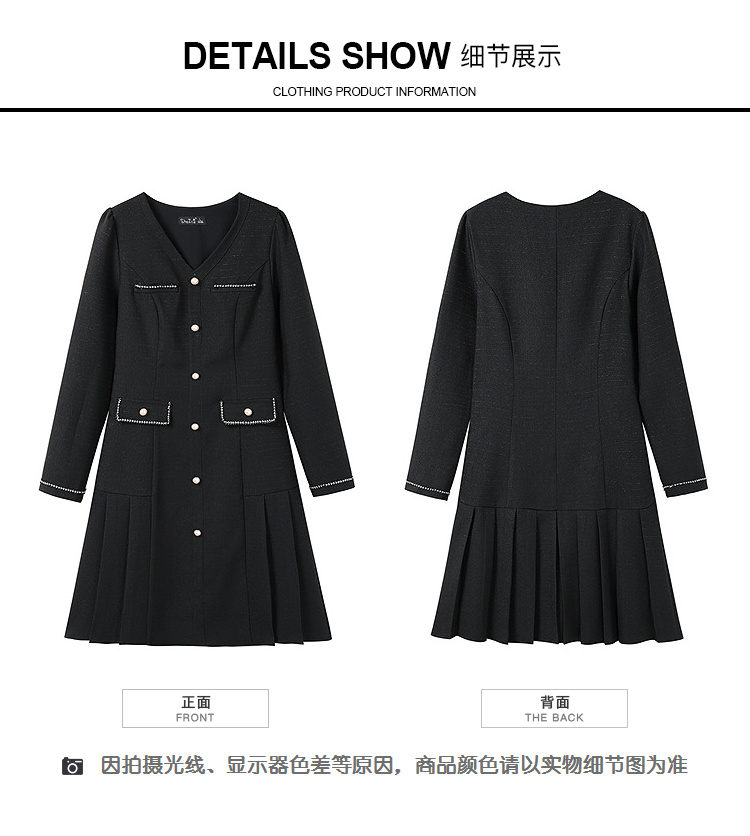 奢姿大码女装2025秋季假口袋设计V领连衣裙胖妹妹小香风时尚裙子9953894224