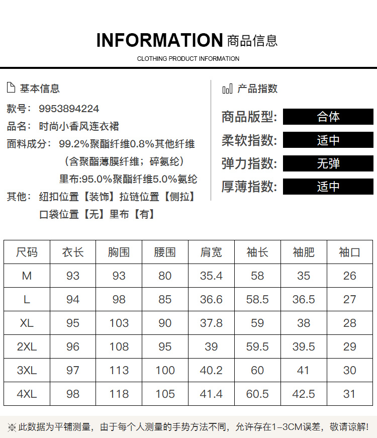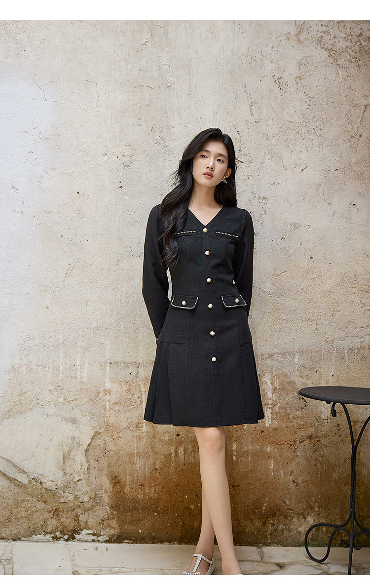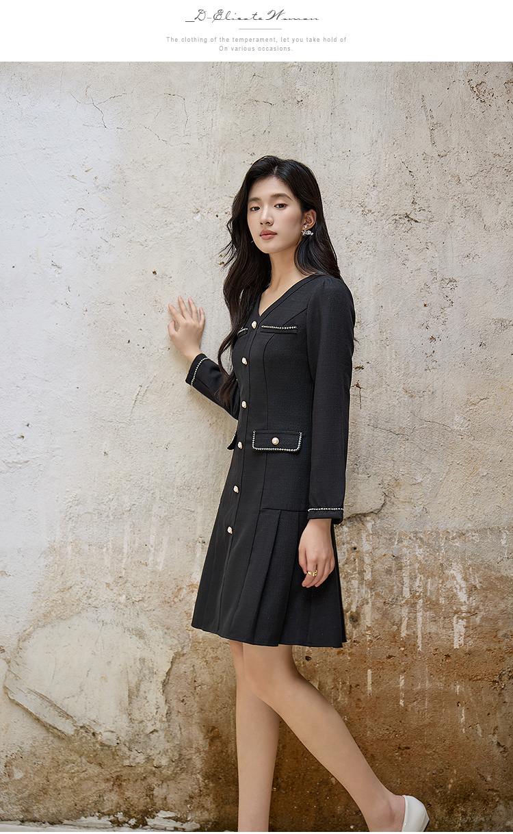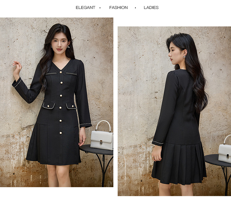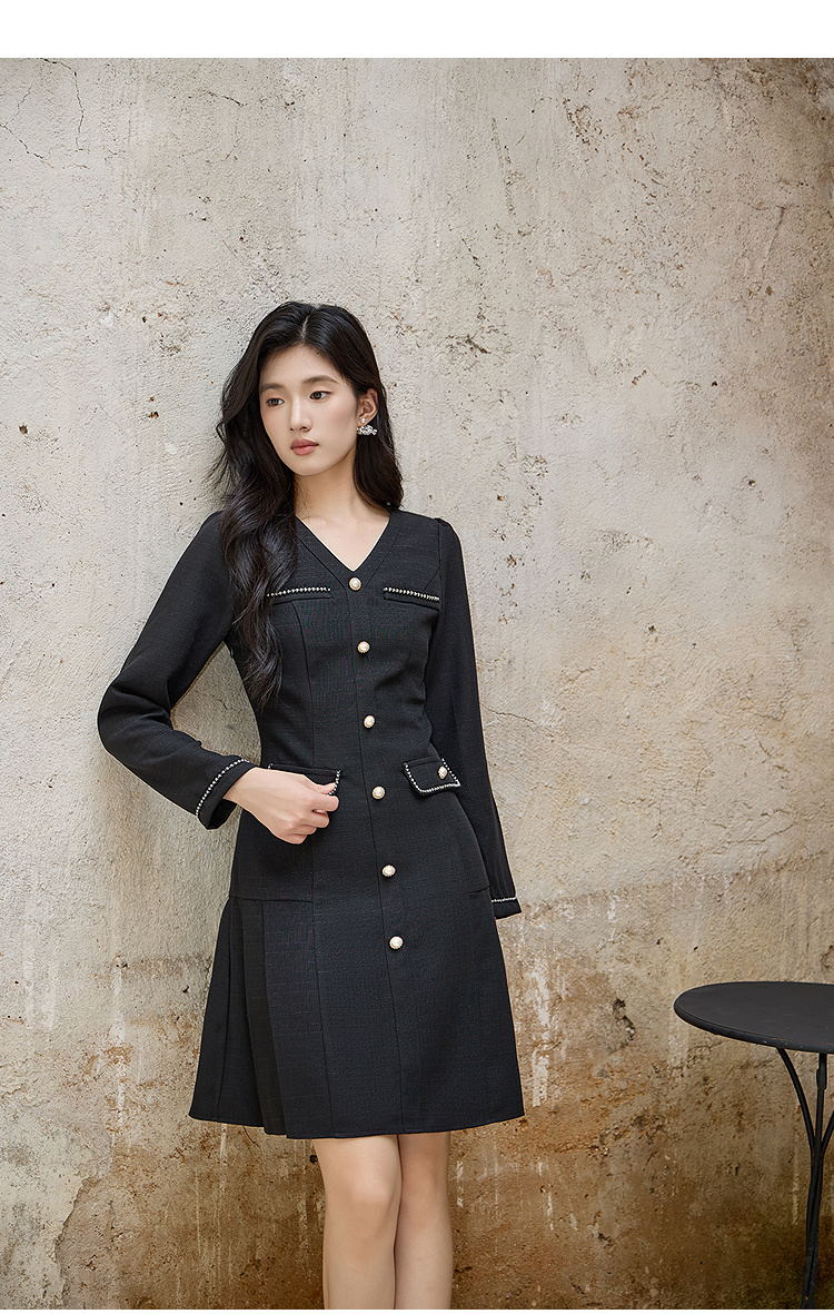 奢姿大码女装2025秋季假口袋设计V领连衣裙胖妹妹小香风时尚裙子9953894224