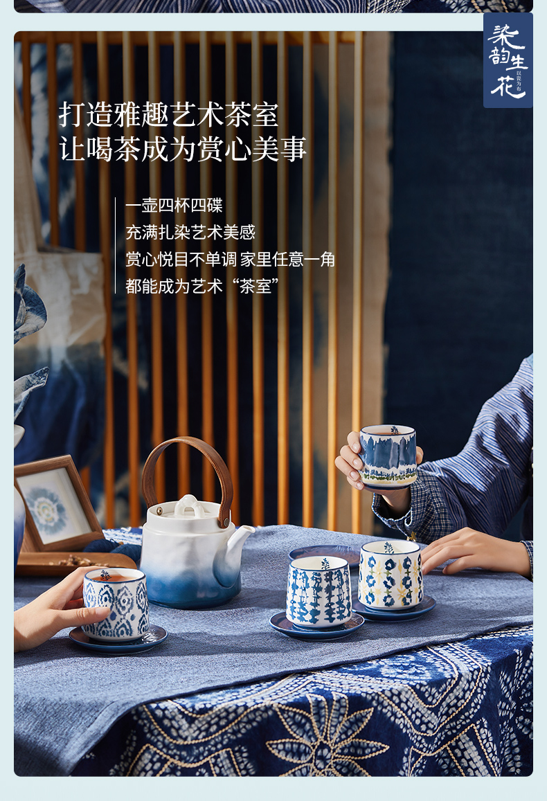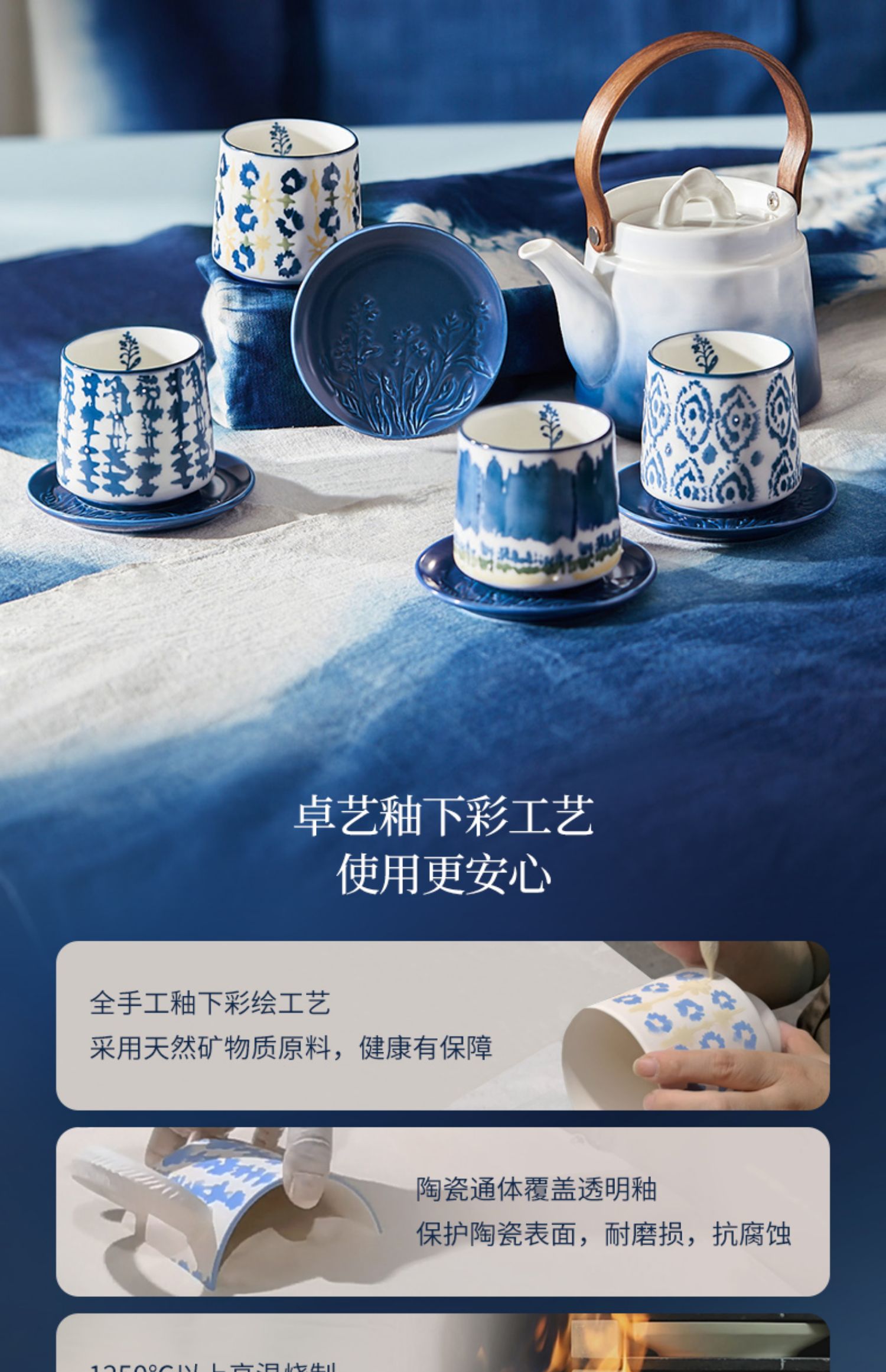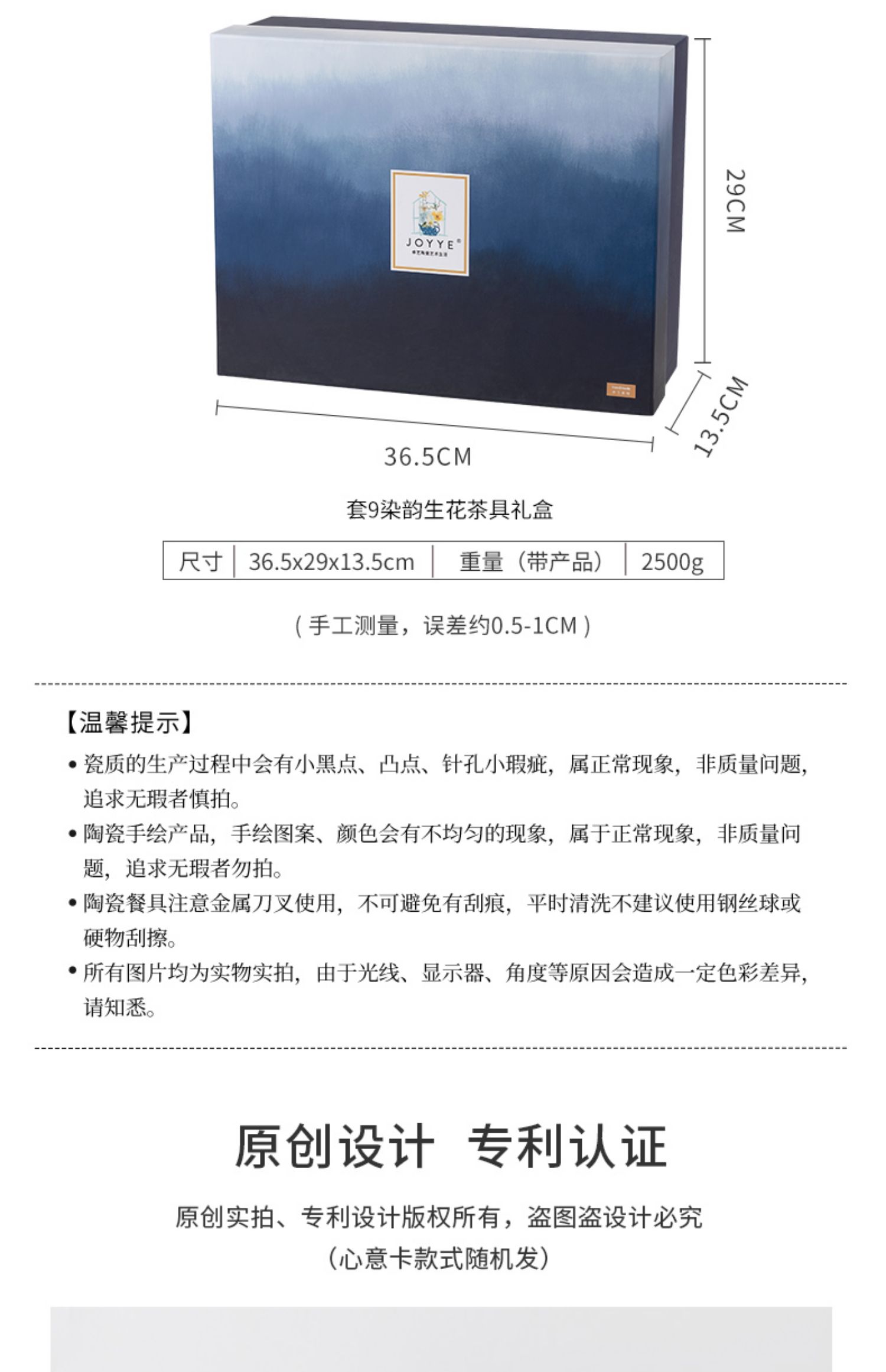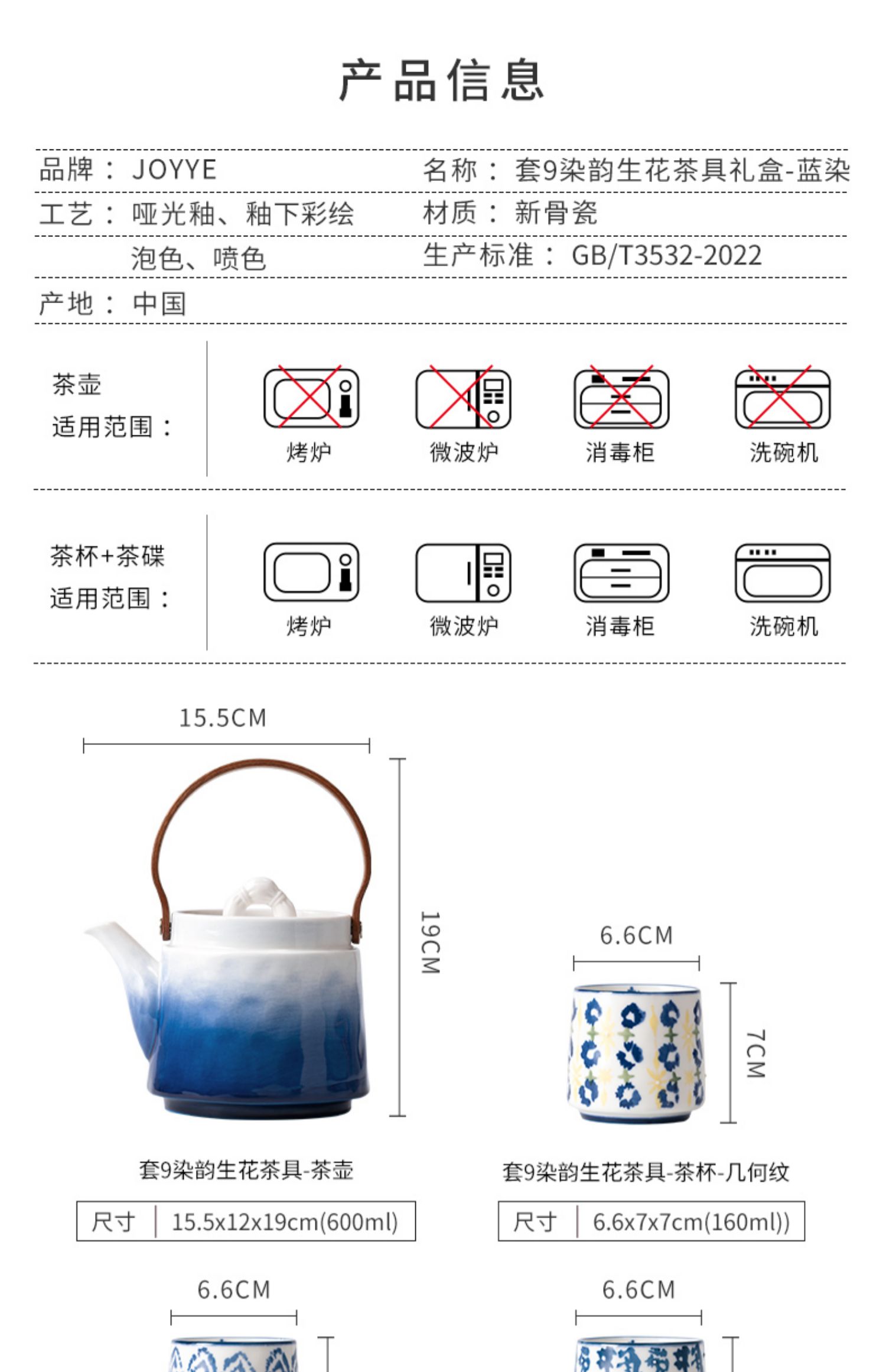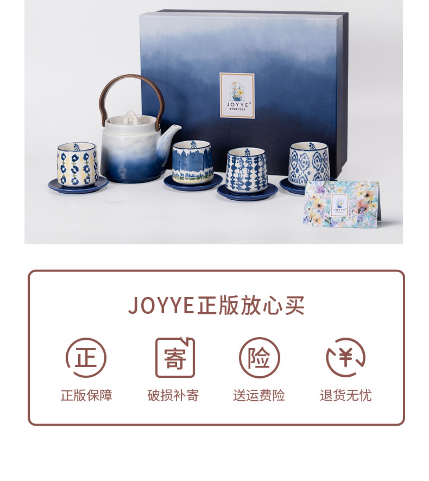 JOYYE 染韵生花茶具礼盒 釉下彩陶瓷茶具套装2025新款手绘茶杯茶壶泡茶家用送礼礼盒