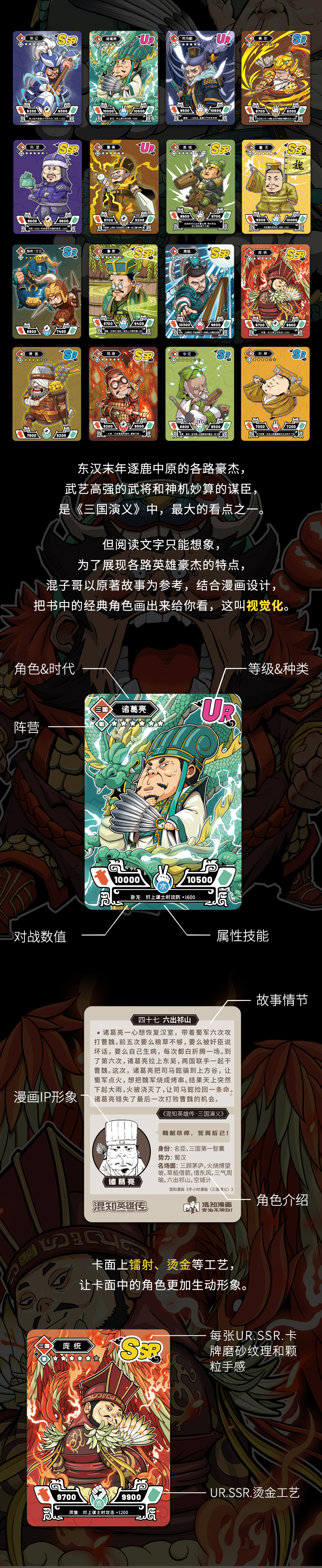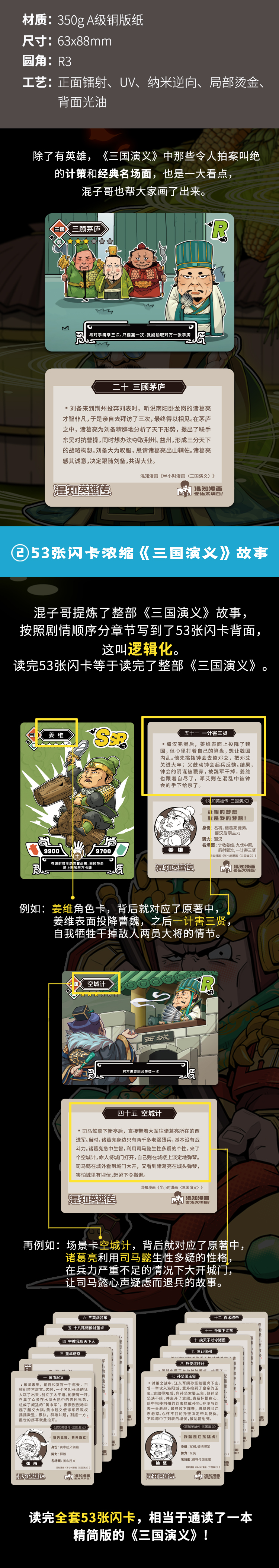 2025版:主要为剧情卡,背面内容为《三国演义》的主要故事情节,集齐一套卡(共53张)就看完了三国。