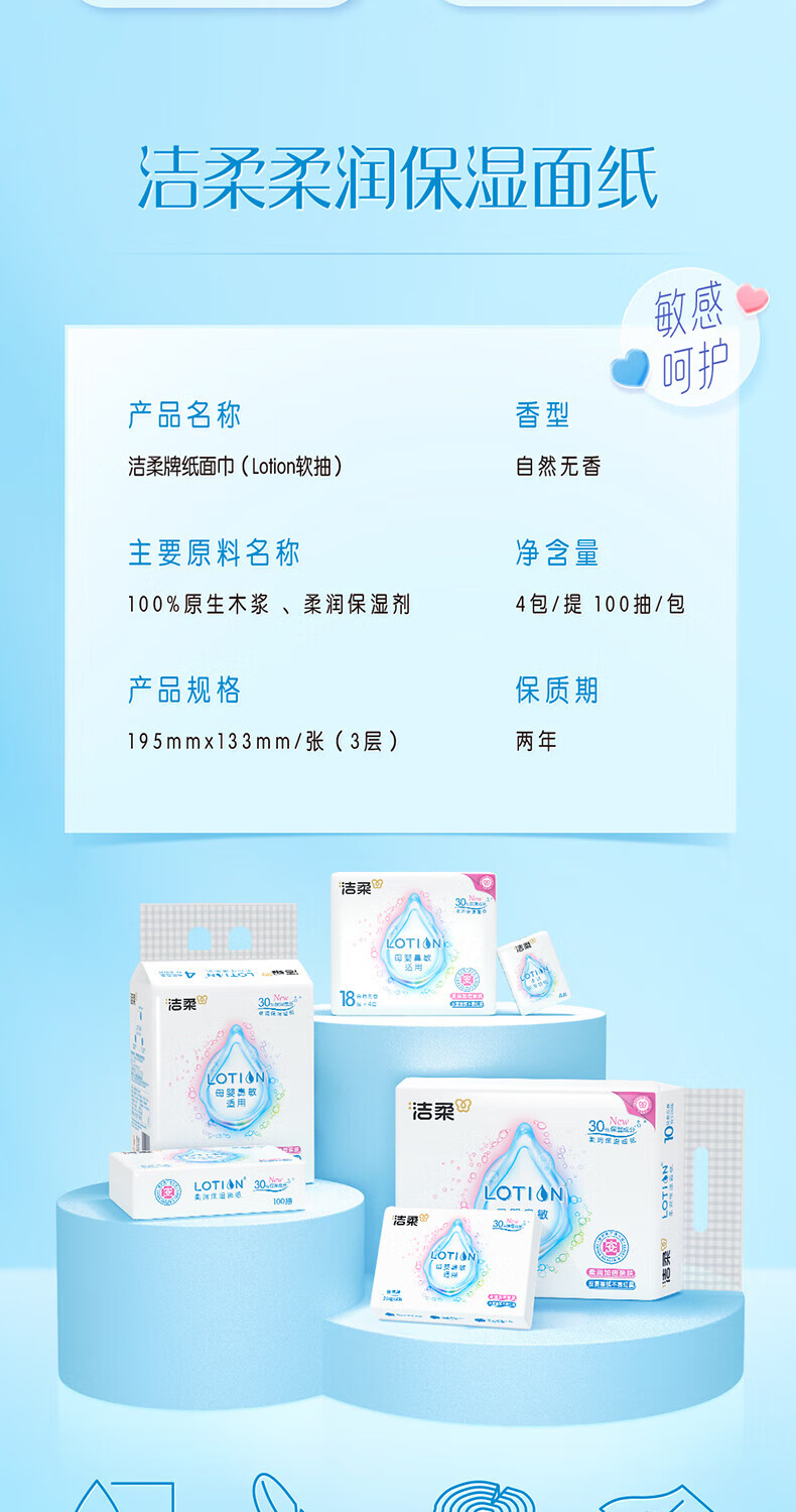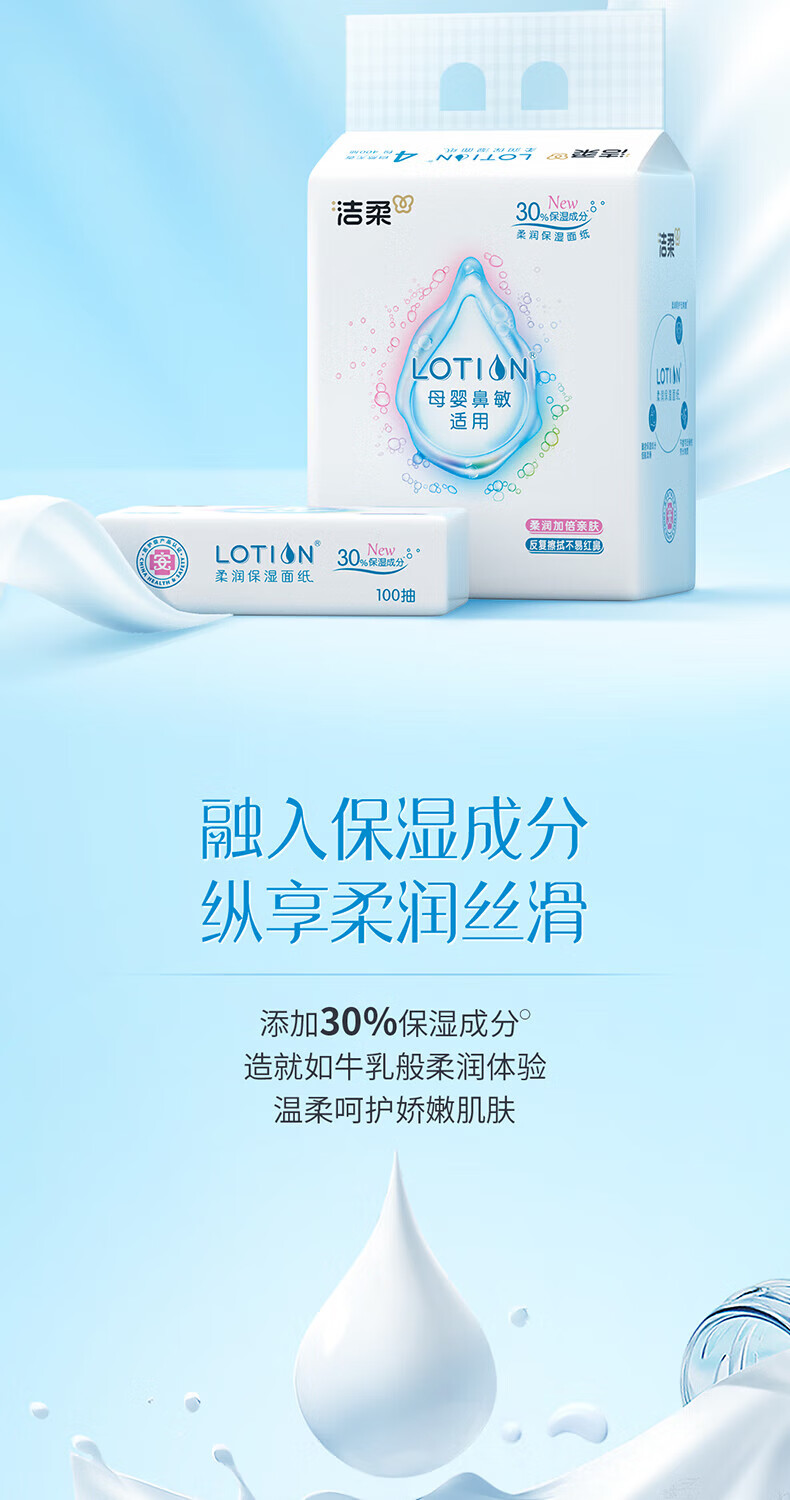 洁柔乳霜纸乳液柔润抽纸面巾纸100抽*4包/提