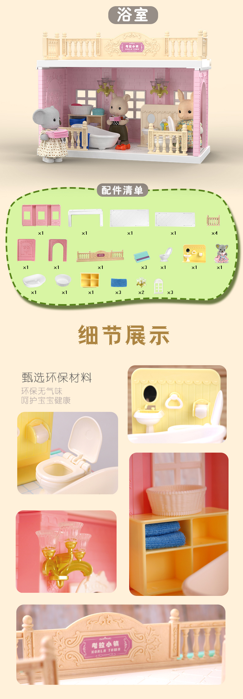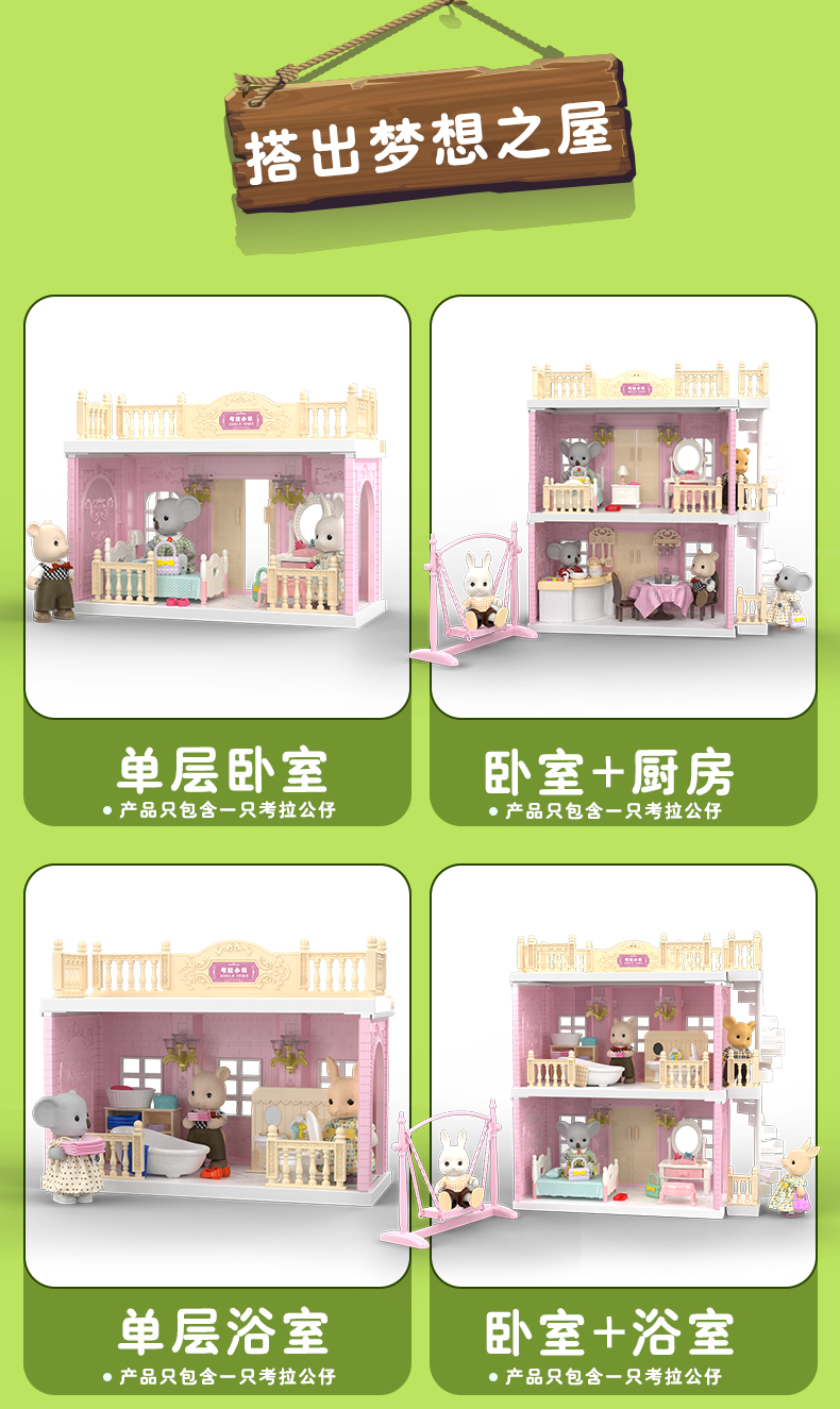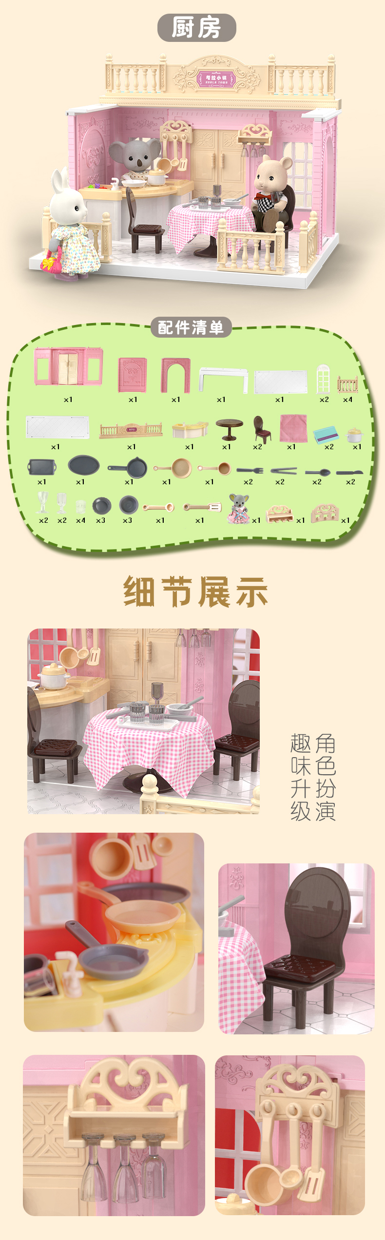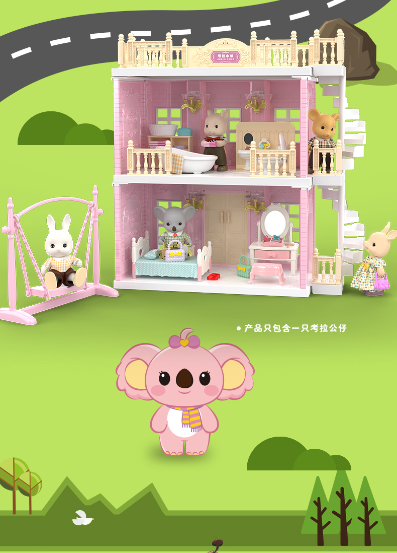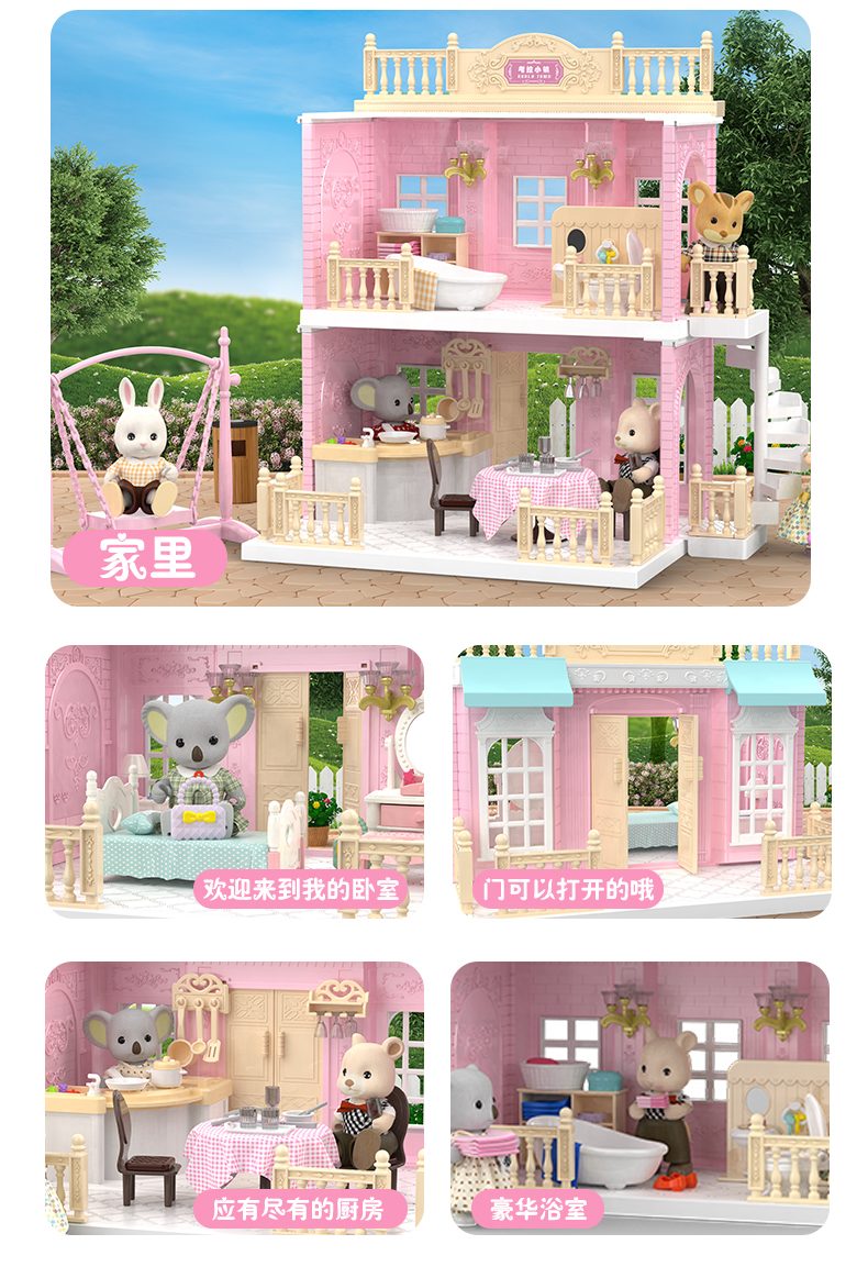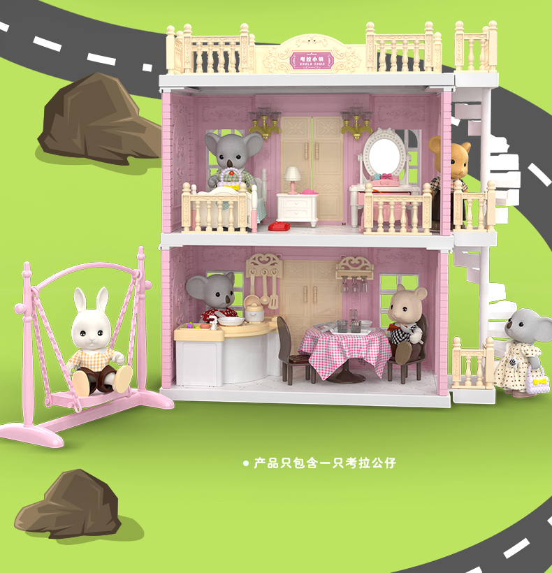 富达尔考拉小镇声光厨房做饭过家家娃娃屋说话唱歌
