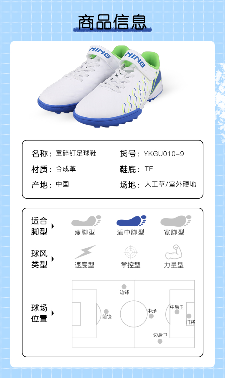小李子李宁儿童足球鞋魔术贴TF碎钉学生校园专用训练比赛球鞋男女孩人草