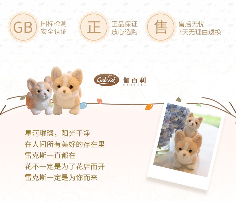 伽百利/Gabriel毛绒玩偶柯基小狗狗公仔玩具睡觉抱枕女孩礼物