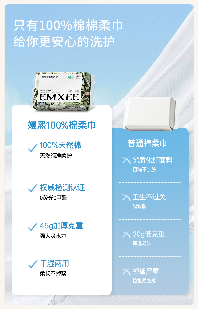 【干湿棉巾】嫚熙棉柔巾婴儿全棉纯棉100抽12包宝宝干湿两用洗脸巾