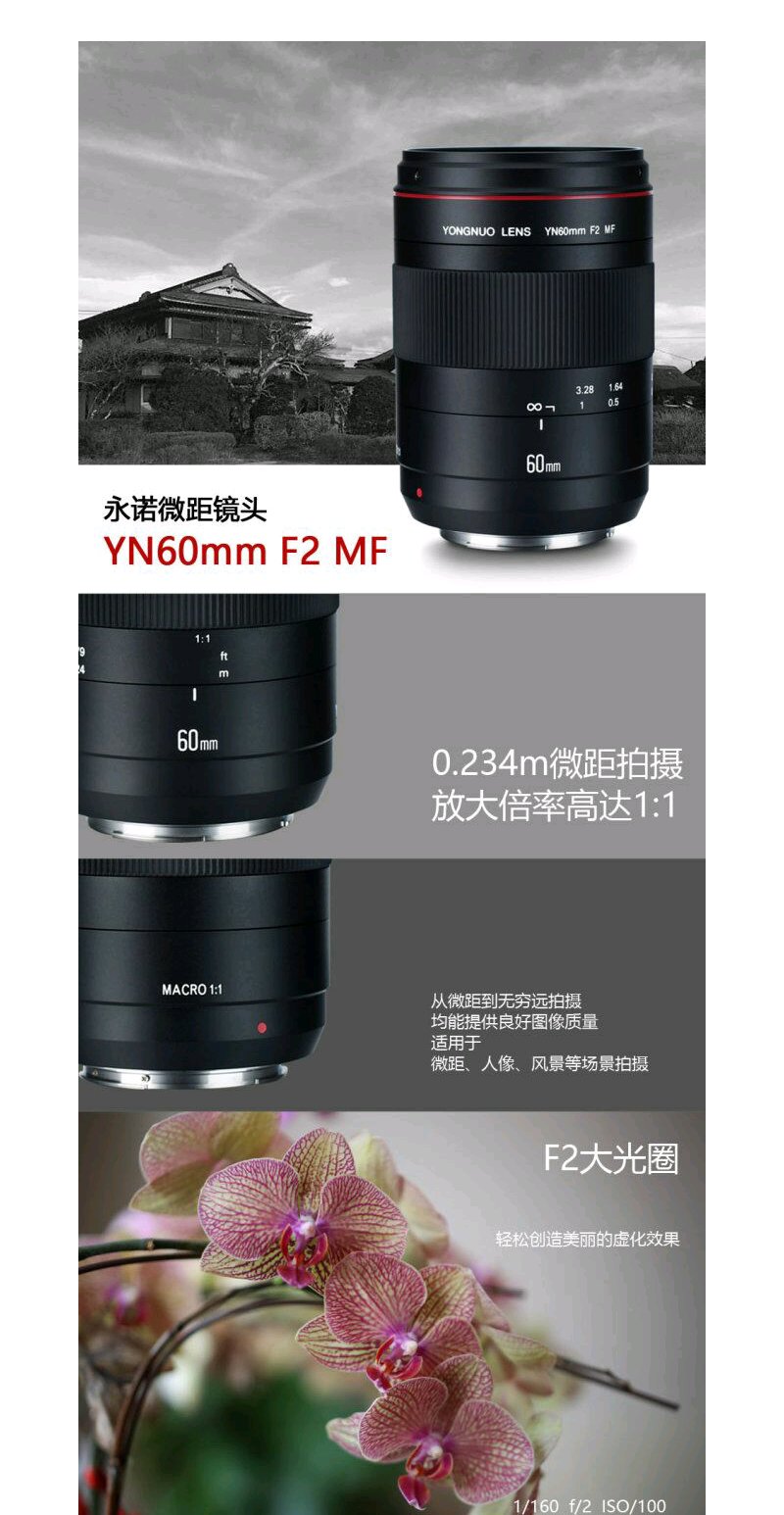 永诺 YN60mm F2 全画幅手动定焦镜头微距镜头 产品人像昆虫拍摄 手动对焦【顺丰包邮,空运隔天到】
