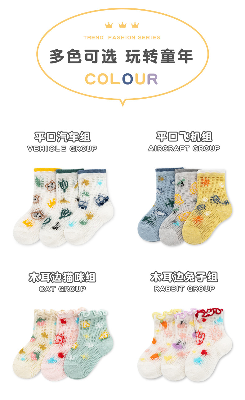【满满心选商城】【39.9元任选2件】【宝宝鞋服】宝宝夏季超薄镂空公主袜儿童宝宝袜子3双装,任选2件下单自动减